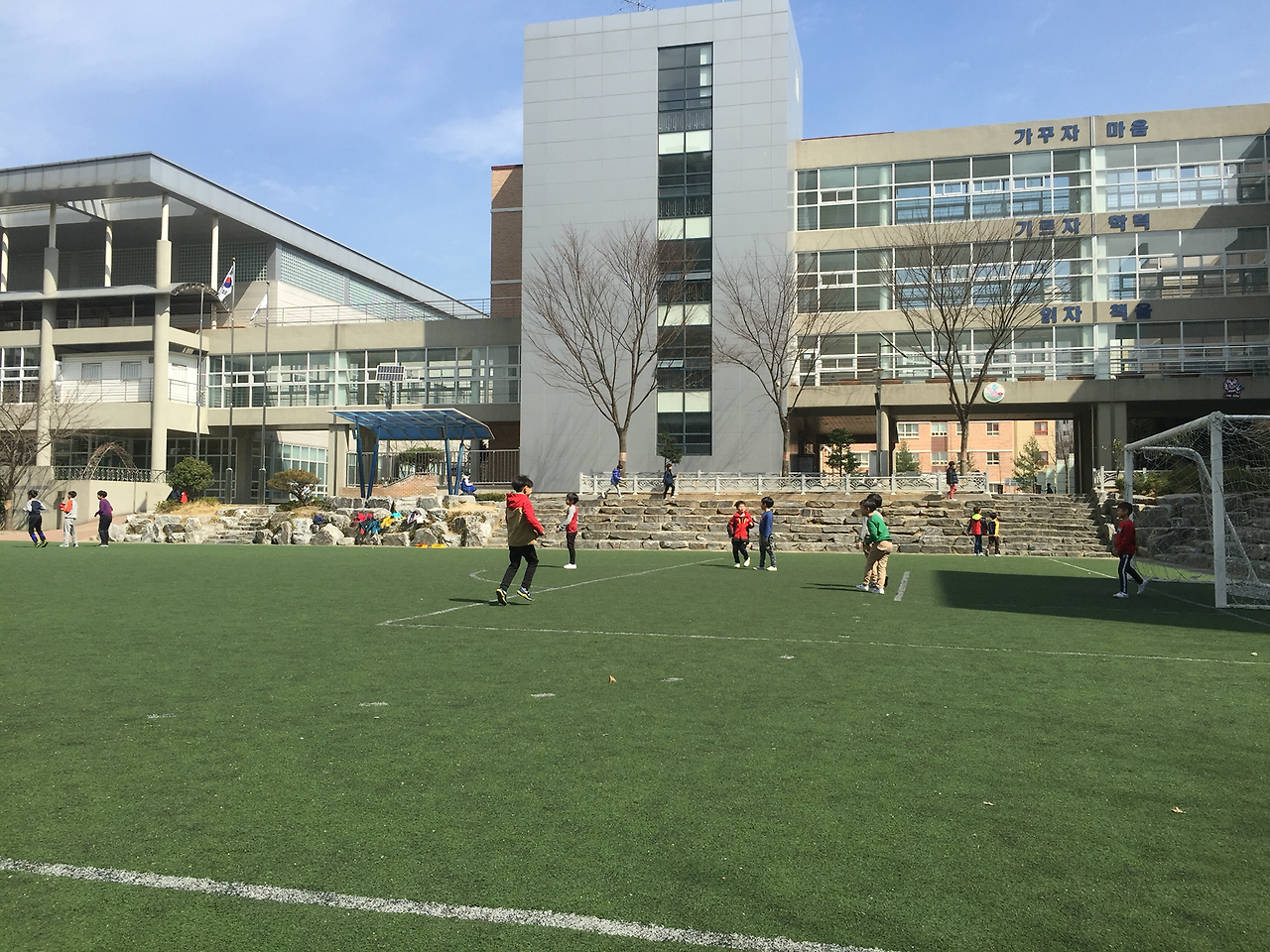 1200명이 다니는 학교인데 인조 잔디의 운동장은 좀 큰 강당만 하다.