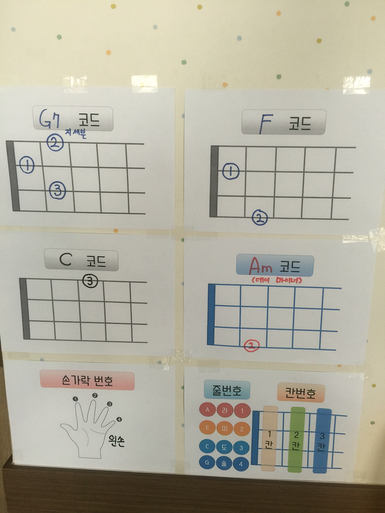 손가락번호, 줄번호, 칸번호, 코드 형식은 그냥 PPT로 직접 만들었다.