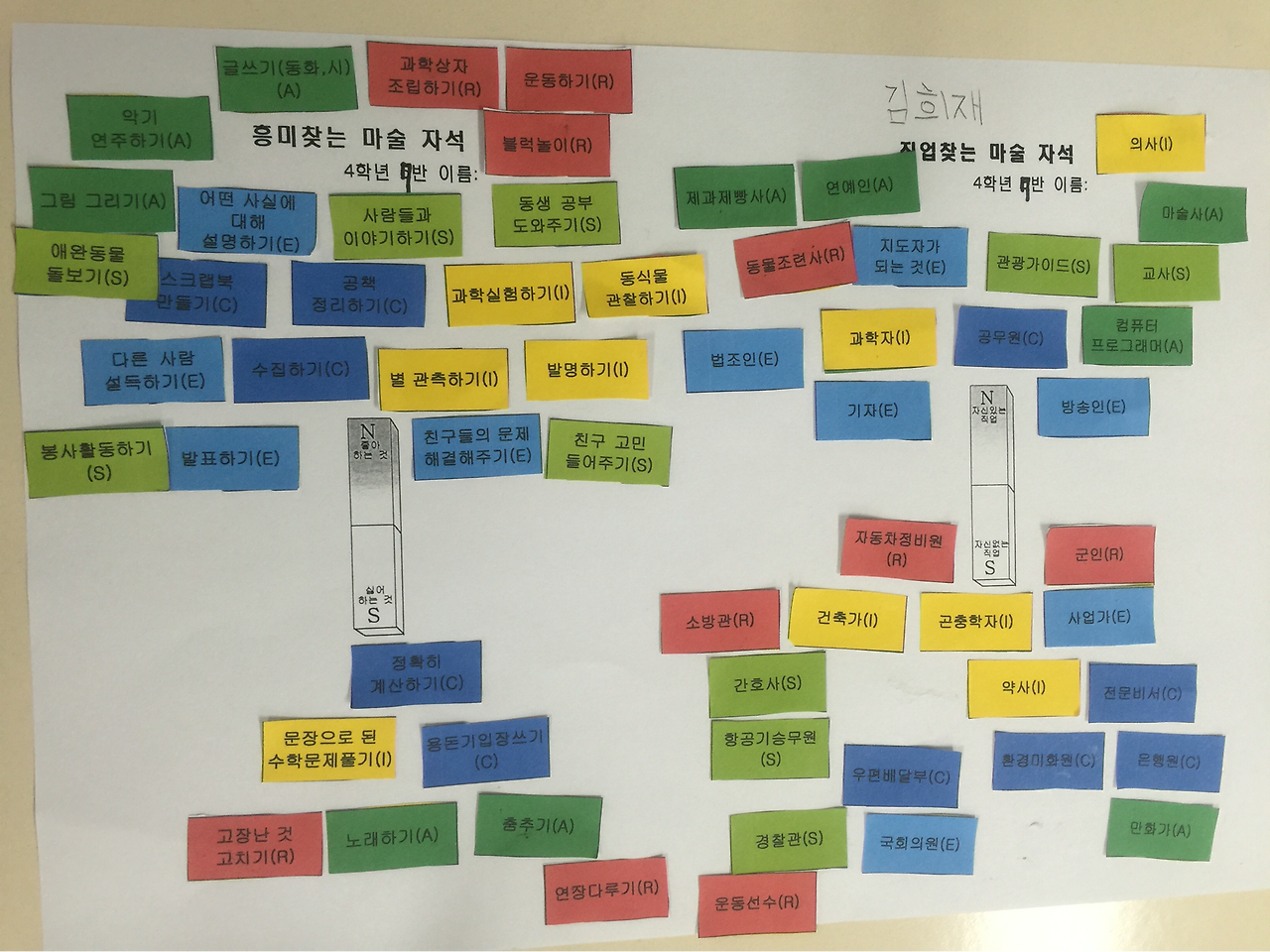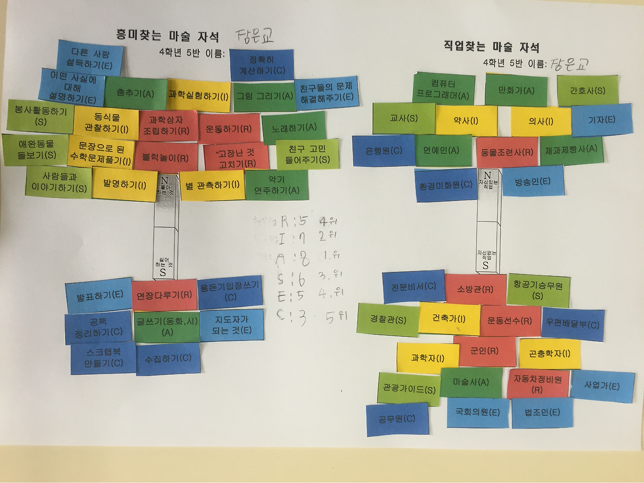 직업 찾는 마술 자석 활동을 했다. 동학년 선생님이 보시길래 나도 흥미로워서 실시해보았다.
