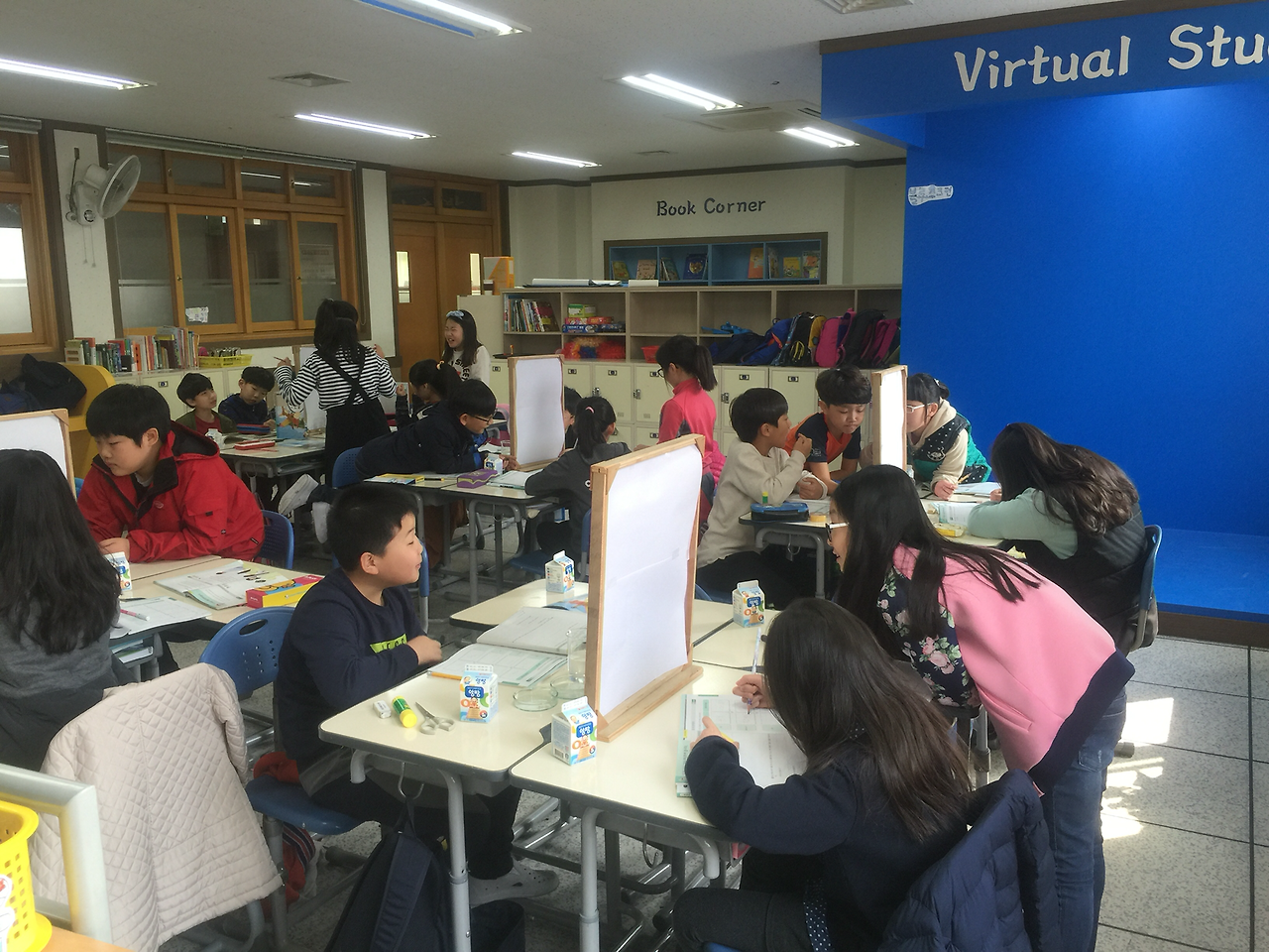 아이들이 서 있어서 또 한번 종이 치면 자리에 앉도록 지도했다.
