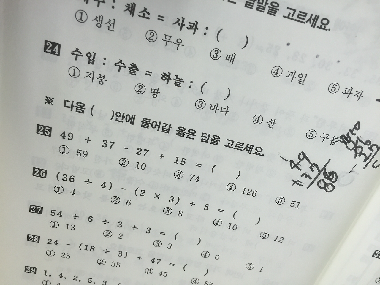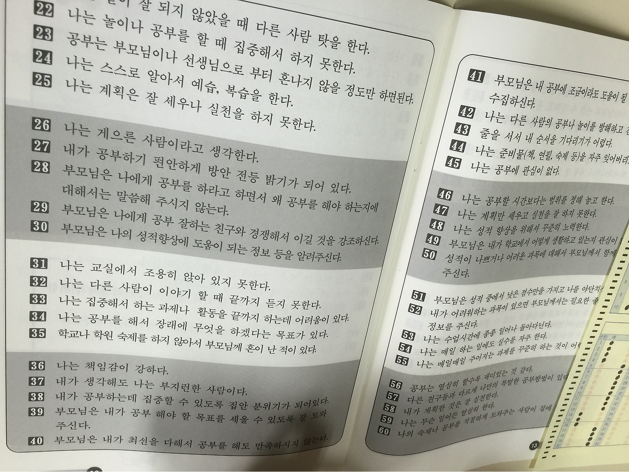 OMR 카드에 작성을 하는 학습능력 진단검사다.