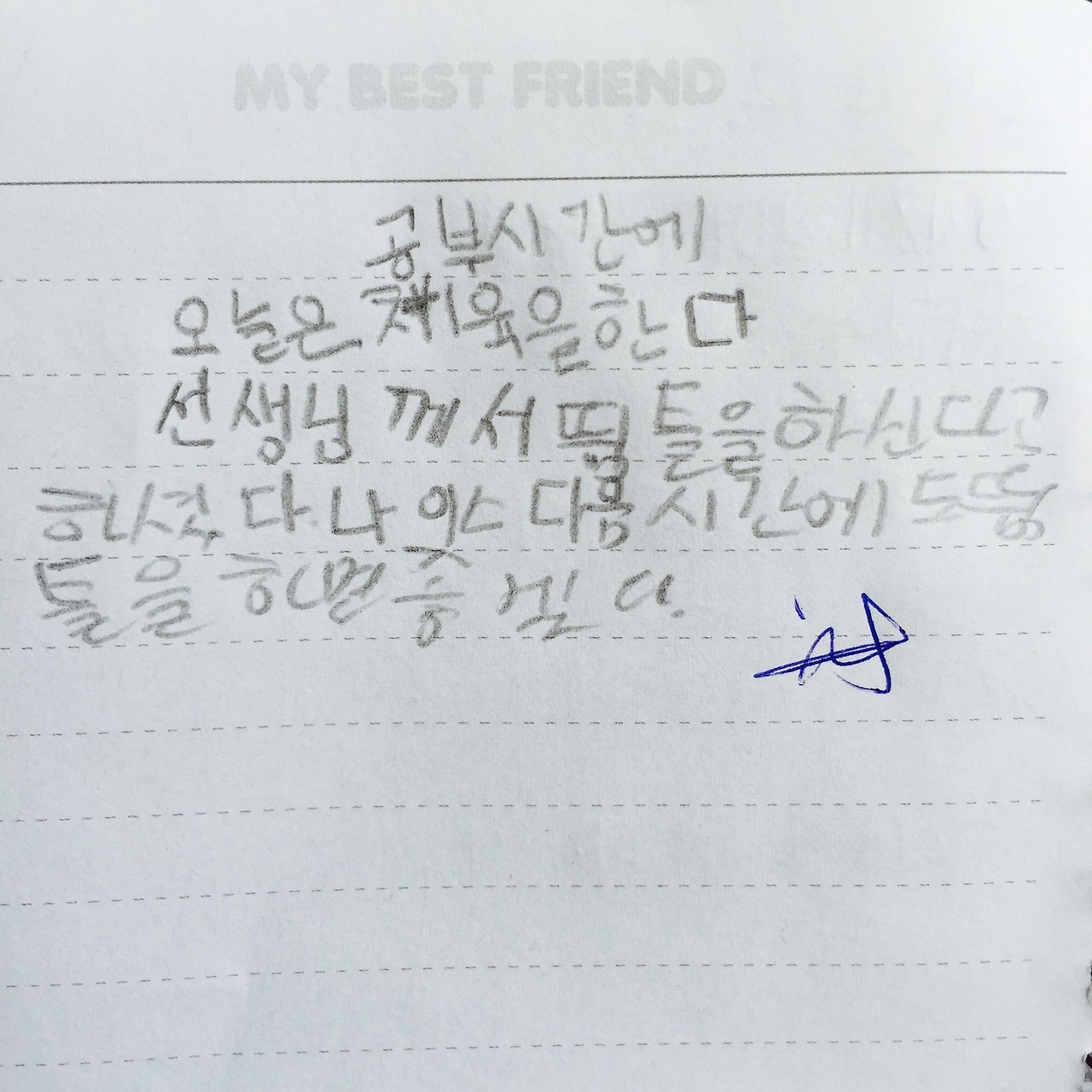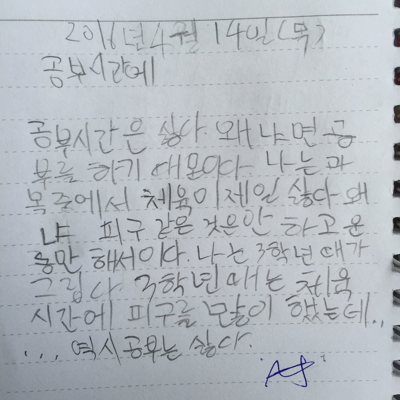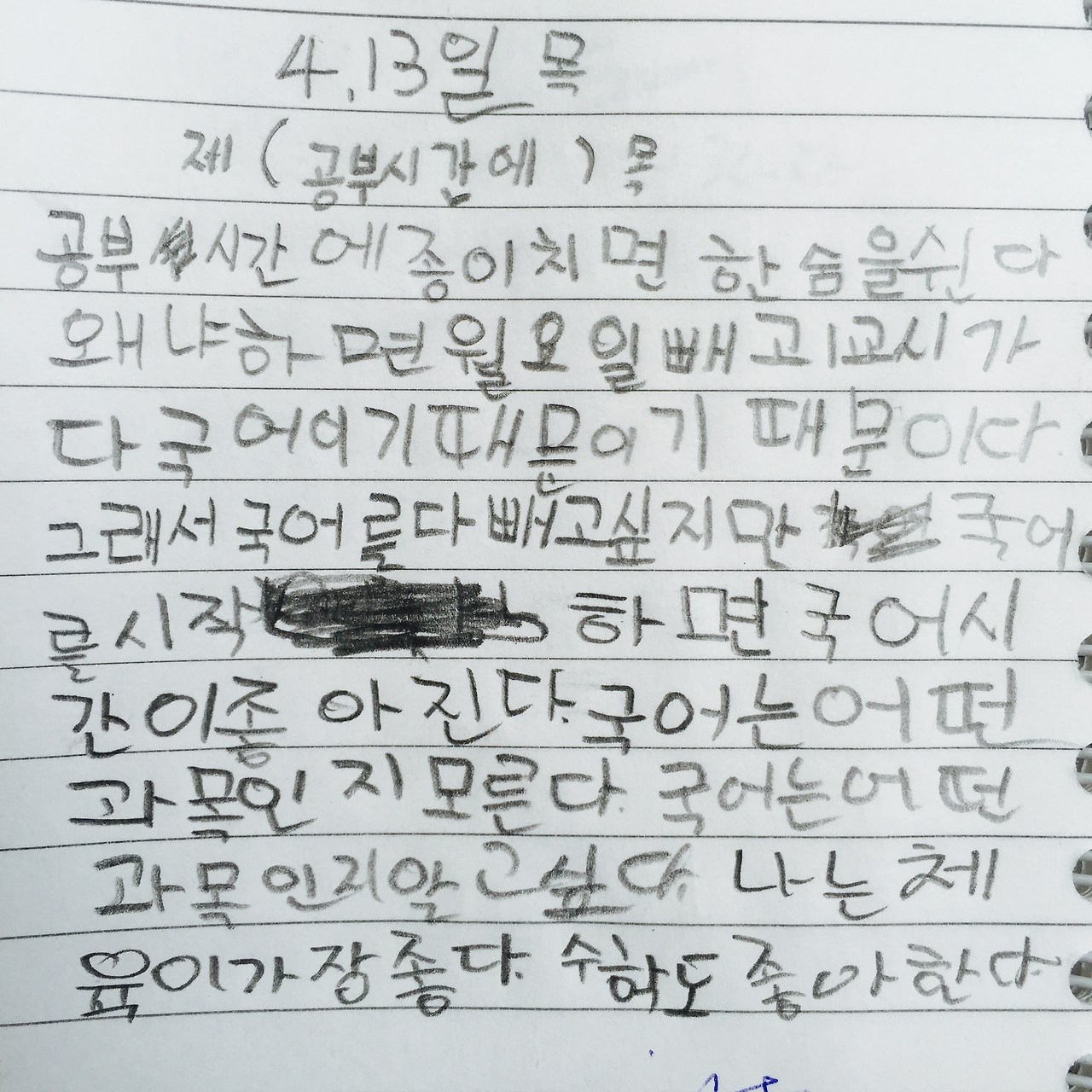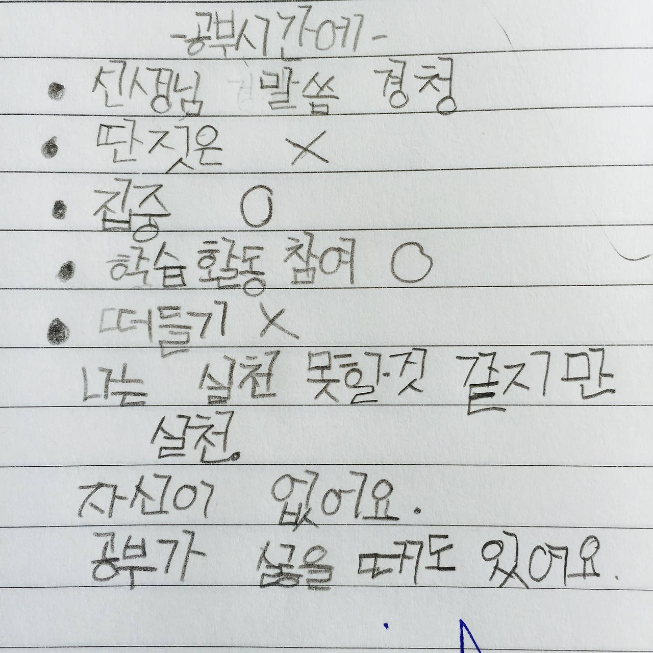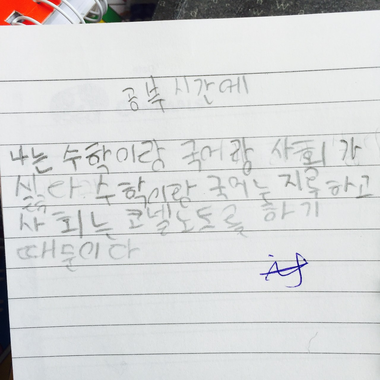 1교시에 공부시간에 라는 제목으로 글똥 주제를 주었다.