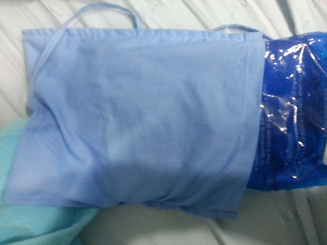 그리고 발을 배게 2개 높이로 올려서 부기가 빠지게 냉찜질 중