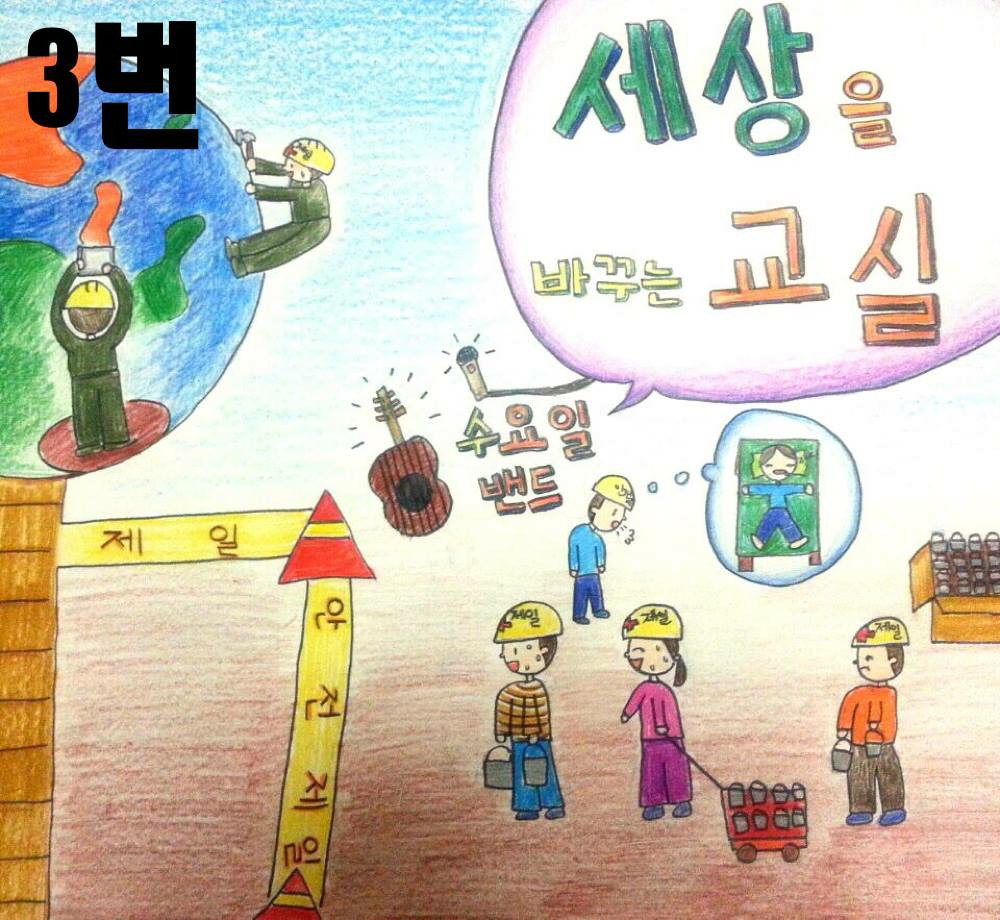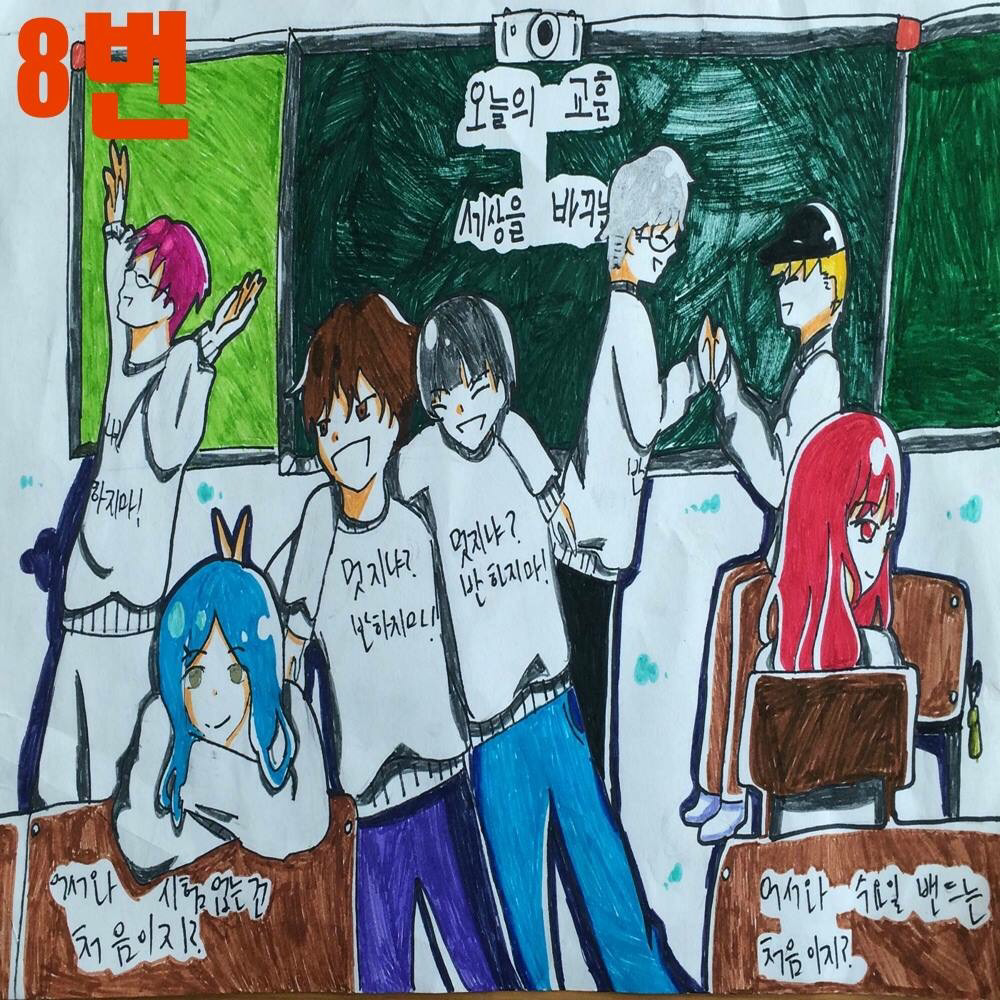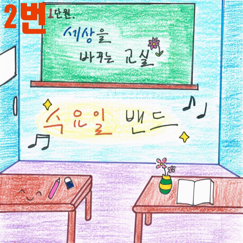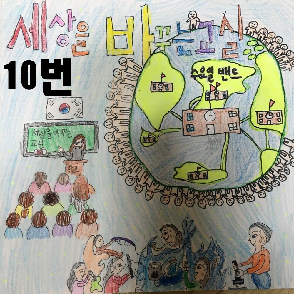 가장 표를 많이 받은 그림은 수요일밴드 새 앨범 "세상을 바꾸는 교실" 앨범 표지 그림으로 선정이 되고, 선정된 아이의 학급에서 파티파티 하실 수 있도록 케익 도넛 등등 10만원 상당의 기프티콘을 드려요!!(수뺀이 통 크게 쏩니다~)