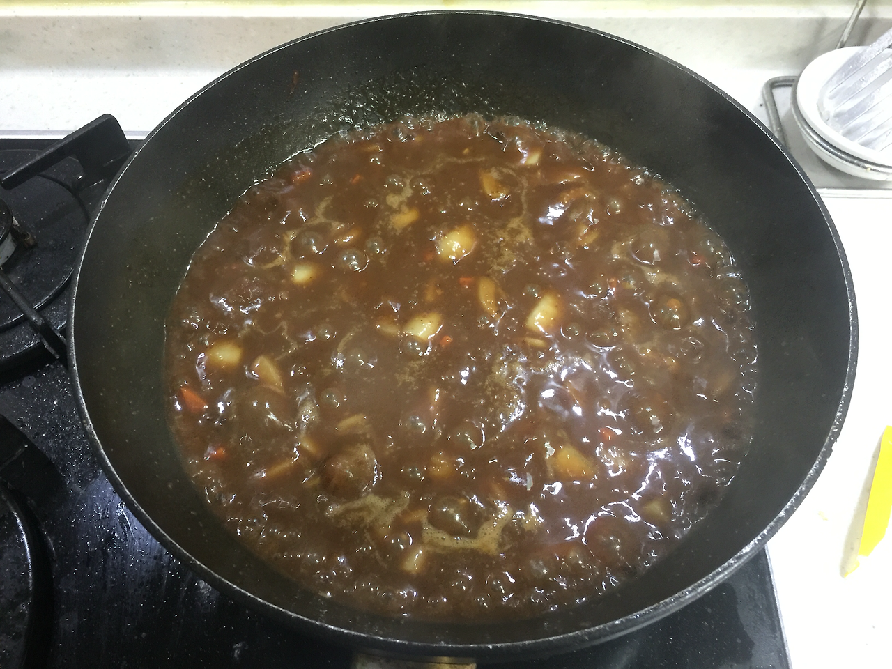 하이라이스 한 봉지 넣고, 적당히 물 넣고 끓인다.