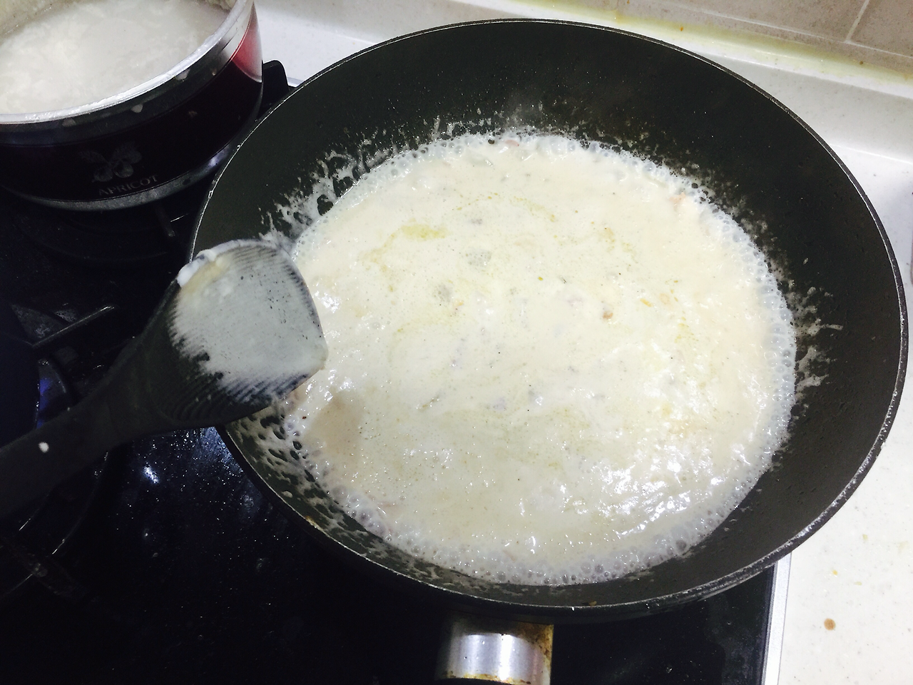 대충 야채가 익으면 우유와 소스 넣고 자작하게 끓인다.