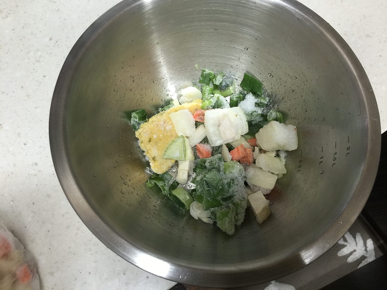 1. 냉동실 대파, 마늘 다진 것, 야채 카레용으로 잘라 놓은 것들