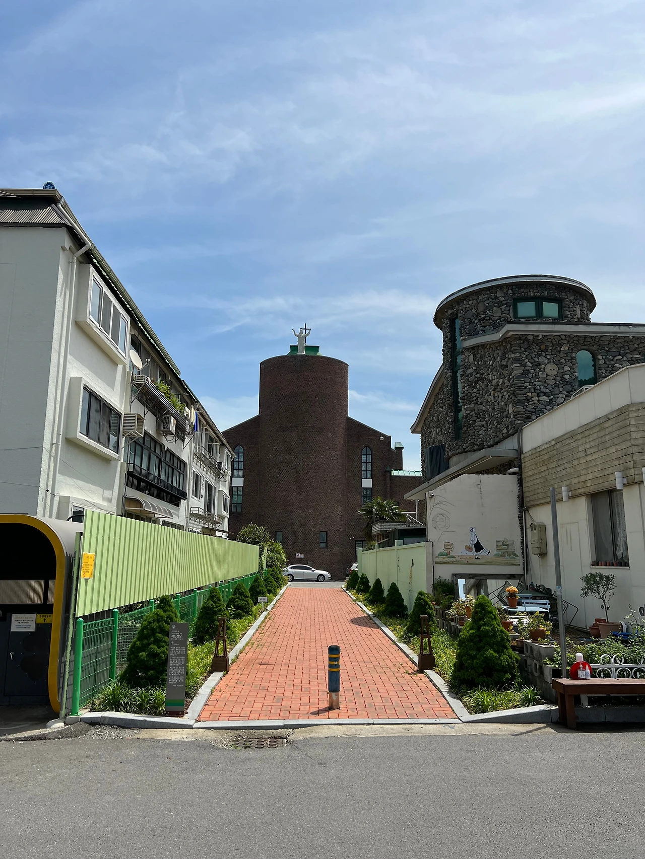동네 한가운데 한뼘 높이만큼 솟아있는 십자가 아래 낮게 임하고 있는 작은 땅의 사람들에게 기꺼이 심중의 평화를 염원하는 하얀 성모마리아를 우러르며 집으로 돌아가는 발걸음과.