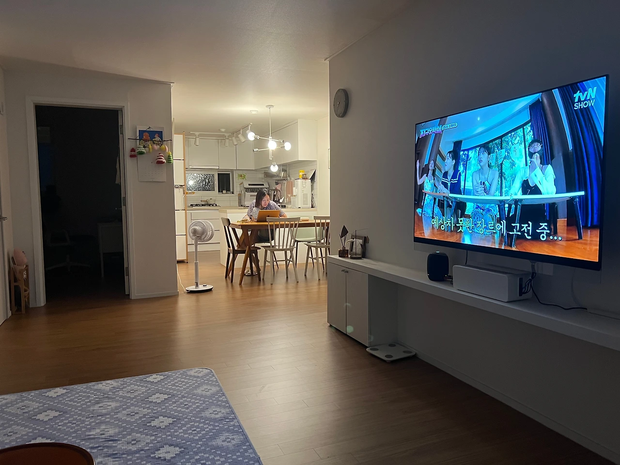 블루투스 스피커로 음악을 듣고, 간간히 유튜브로 영상도 보고,