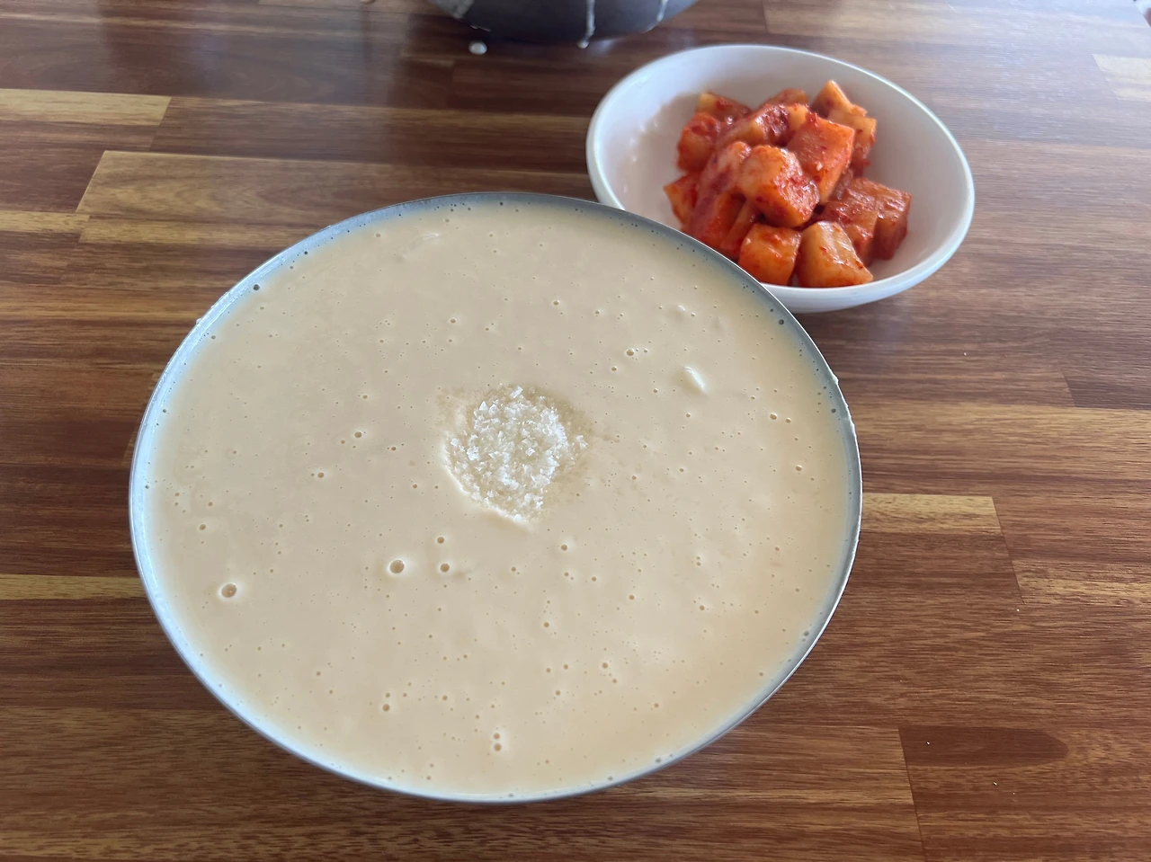 이 동네엔 한 집 걸러 하나씩 팥죽과 콩국수집이 있다. 이 지역에서는 별미로 자주 먹는 음식인 모양이었다. 철에 따라 온면을 팔지만 사시사철로는 냉국을 먹고 팥죽은 팥죽에 면을 넣어주는 것이었다. 나는 아랫장 가는 길 동천변에 있는 장대콩국수집에서 콩국수를 시켜먹었다. 더워져서인지 식당 안은 이른 시간부터 붐볐고, 점심 때가 되자 대기자가 생겼다. 기본은 소금 베이스에 나왔고 비치된 설탕통에서 취향에 따라 설탕을 넣어먹는 시스템이었으며, 설탕통 안에는 작은 국자만한 숟가락이 들어가 있었다. 나는 설탕을 콩물이 아니라 콩국수에 넣어먹는게 익숙지 않아 고민하다가 반쯤 먹은 후 숟가락(작은 국자만한, 국자라고 해야할지도) 가득 퍼서 넣어 먹었는데, 달아진다기 보다 텁텁한 맛이 사라지는 것 같아 생각보다 잘 맞았다. 이 별미는 여름철마다 생각날 것 같다.