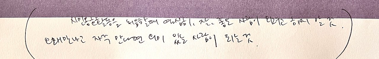 이제 두 번의 교육이 남아있다. 이 교육으로 장애인에 대한 나의 인식이 완전히 바뀌지는 않겠지만 그들과 나의 사이에 있는 틈에 구멍이 조금씩 열릴 수 있는 시작이 될 것 같다.