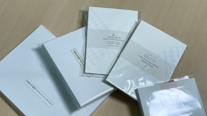 교보 핫트렉스에 가면 항상 보이던 무지 편지지의 브랜드 '자연과사람'. 이번에는 온라인 샵에서 편지지 100장이 담긴 패드(3,800원)와 봉투(15ea, 1,000원)를 따로 구매했다. 대/중/소 사이즈가 구분되어있는데, 목적과 취향에 맞게 크기를 선택할 수 있어 좋다.