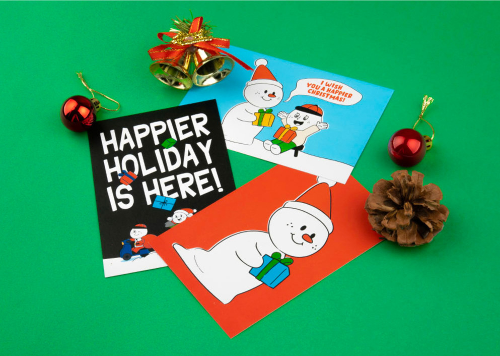 꼭 크리스마스 카드가 엄.근.진 할 필요는 없지 않나? 친분의 정도와는 별개로 어떤 관계는 장난기 가득한 유머로 가득 차기도 하니 말이다. 가볍고 즐거운 마음을 꼭 닮은 일러스트가 담긴 트렌디한 디자인임에도 엽서 한 장에 천사백 원 정도라는 점이 매력적이다. 참고로 이 집 엽서에는 Happy라는 단어가 많이 등장하는데, 오롤리데이 브랜드의 모토가 '행복을 파는 브랜드'이기 때문이다. 첨부된 사진은 'Christmas MNNS set'(4,000원) 제품이며, 3장의 각기 다른 엽서로 구성되었다.(4,000원)