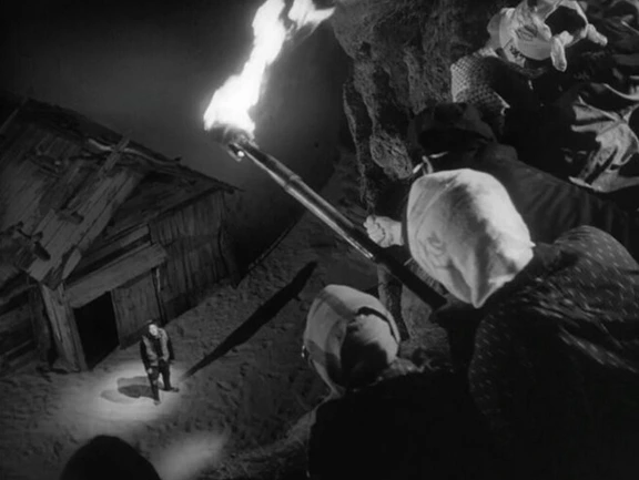 그러니까 우리는 영사기가 스크린에 상을 부여한다는 전통적인 개념을 뒤집어볼 필요가 있다. 현실에서 스크린으로의 침투가 이 가느다란 빛줄기, 그 웜홀을 통해 이루어진다면, 그 반대의 경우는 성립하지 않는 걸까? 어쩌면 영화 속에서 남자가 구덩이에서 퍼올리는 모래가 스크린 안에서 밖으로 던져질 수도 있다는 가정을 해보자. 그 수많은 모래가 각각의 층위에 해당하면서 모래를 밟는 남자의 존재를 계속해서 마찰시키고, 그 마찰로 존재가 풍화되어가는 것이 이 영화의 테마이다. 그렇다면 그 모래가 스크린 밖에 흩뿌려진다는 것은 우리 또한 모래에 마찰된다는 것, 존재의 풍화를 겪는다는 것, 영화와의 점진적인 동화를 경험한다는 것을 의미한다.