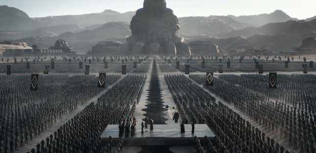 세계의 과포화. <듄>에서 퀴사츠 해더락인 폴은 모든 미래를 볼 수 있게 되어서 역설적으로 자신의 미래를 빼앗기고야 만다. 무엇을 선택해야 하는지가 명확한 상황에서 불확실하거나 비합리적인 선택지는 자연스레 배제되며 이를 따라 선택이라는 말은 이성과 합리성의 수순 아래 운명을 강제하는 요인이 된다. <듄>을 관통하는 이 주제는 마치 말뚝과도 같은 고정점에 관해, 이것이 미래를 향한 달성 수단일 수도 있지만 반대로 운명에의 속박일 수도 있다고 말한다. 미래가 정해져 있다면 그저 수행하기만 하면 그만일 뿐이지만 반대로 여기서 신체란 영혼을 구속하는 과잉 실천일 뿐이라고 말이다. 그런 점에서 <듄>의 모래 사구와 그 위에 올라선 폴은 마치 안팎이 서로 뒤집힌 존재인 것처럼 느껴진다. 사구에 오른 폴의 모습은 사막을 두고서 메마르고 건조한 폐허를 배경 삼은 게 아니라 반대로 그 자신이야말로 폐허라는 장소처럼 느껴진다. 폴의 목표는 자신을 희생해 세계의 멸망을 막는 것, 즉 안과 밖의 폐허를 교환함으로써 세계를 대신해 자신을 희생하는 일이다. <듄>의 원작 소설에서 폴은 자신의 아들을 통해 인류에게 예지력을 전파하며, 이를 통해 모든 인류의 운명이 파국으로 고정되는 일을 막는다. 마치 그 자신의 육신에 모든 이들의 기대가 걸려있었던 것처럼, 세계의 과포화에 가려진 바깥이 폐허로 변해가는 일을 막으려 했던 것이다.