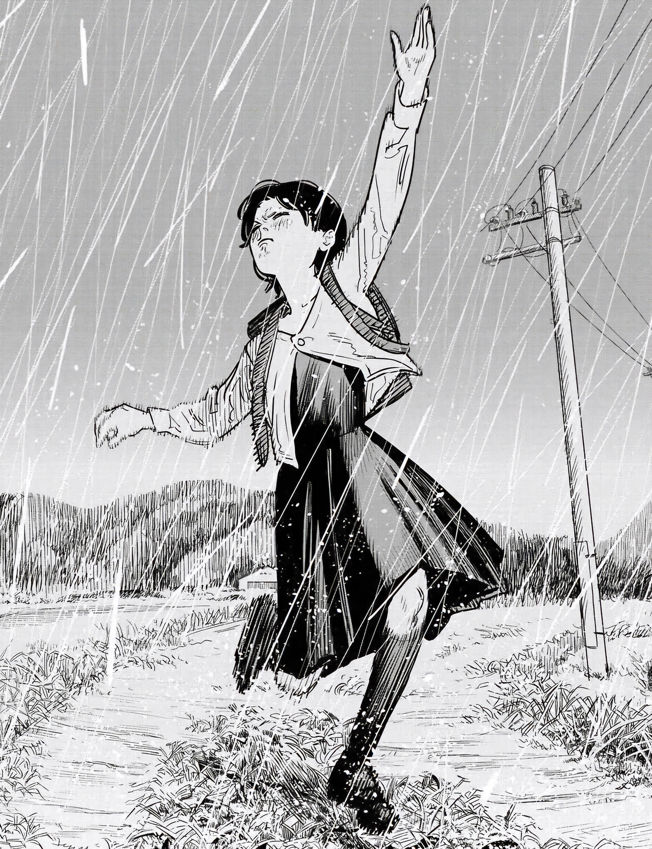 과거를 잊는 것보다 중요한 건, 과거를 안고 살아가는 법이다. 출판된 원작 만화는 시작과 끝에 Don’t와 in anger를 기입하면서 작품의 주제의식이 “뒤를 돌아보지 않는 것”이라고 말한다. 앞으로 나아가는 일을 관찰한다는 측면에서, 작품이 강조하는 등은 한 세계를 끝내기보다 그런 세계 안에 남겨진 독자의 입장을 강조하는 듯한 느낌이 있다. 가령 하스미 시게히코는 <존 포드론>에서 존 웨인의 뒷모습에 관해 다음처럼 언급한다. “즉 이 여러 개의 숏의 연쇄는 던져진 물체가 저 멀리 사라져가는 운동을 우리 관객에게 틀림없는 ‘던진다’.” 존 웨인의 등진 모습에 관한 서술이기도 한 이 말은 사물을 던지는 행위가 대상의 운동성이 아닌 남겨지는 쪽의 반향에서도 발견된다는 점을 지적한다. 그러니까 카메라가 무언가를 찍는다는 것은 한 세계를 포착하는 것만이 아니라 거대한 외부를 동반한다는 점을 뜻한다. 만화 또한 컷 안에 있는 것만이 작품의 전부는 아니며, 만화는 컷과 컷 사이의 간극으로 작업한다고 볼 수 있다. 컷 안이 상상의 영역이라면, 컷 밖은 상상할 수 없거나 상상하지 않은 영역이다. 이와 같은 틈새는 우리를 한 세계에 던지며, 한 세계를 등진다는 건 우리가 무언가를 저버렸다기보다 우리 자신이 해방되어야 할 과거에 가까울 것이다. 그렇다면 여기서 후회와 실패를 끌어안은 것은 도리어 안쪽, 영화나 만화 같은 내부에 해당한다고 볼 수 있다.