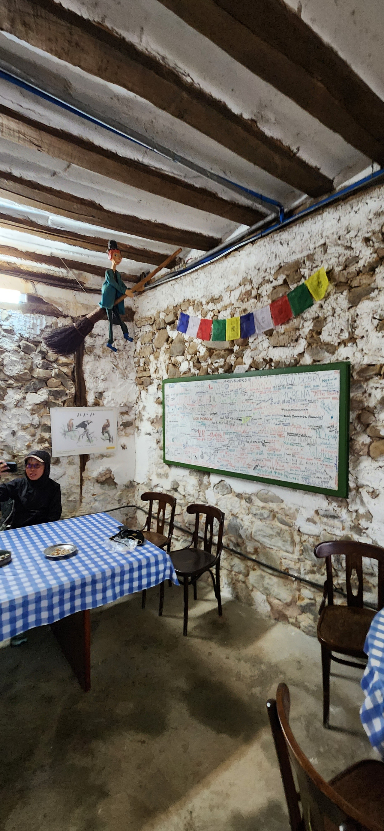 일단 비가 오니 판초가 번거롭다. 바람에 팔랑거리는게 거슬리고 틈새로 은근히 물이 조금씩은 스며들어 춥기도 하다. 온통 구름이랑 안개가 가득해서 풍경도 사라져버렸다. 빗속이라 폰 꺼내서 사진도 안찍게되고 고개를 들면 비를 맞으니 계속 바닥만 보면서 가야한다. 짜증나고 영 고역이다.