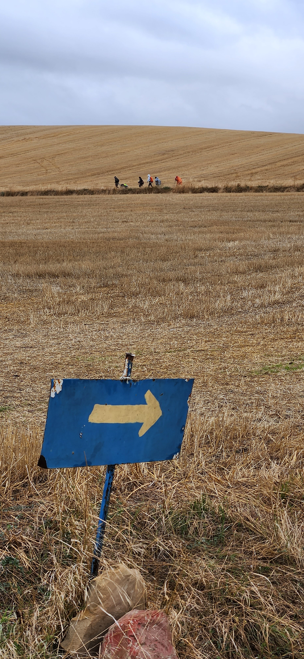 그러다가 또 잠깐 비가 그치고 구름사이로 파란빛이 조금만 보이면, 금새 다시 기분이 좋고 그래도 오늘도 걷길 잘 했네 싶어서 또 열심히 사진도 찍는다. 수레를 끌고 순례하는 스페인 노부부는 오늘도 저 멀리 보이셨는데 내 카메라(는 아니고 폰이지만)에 운치있게 포착되셨다.