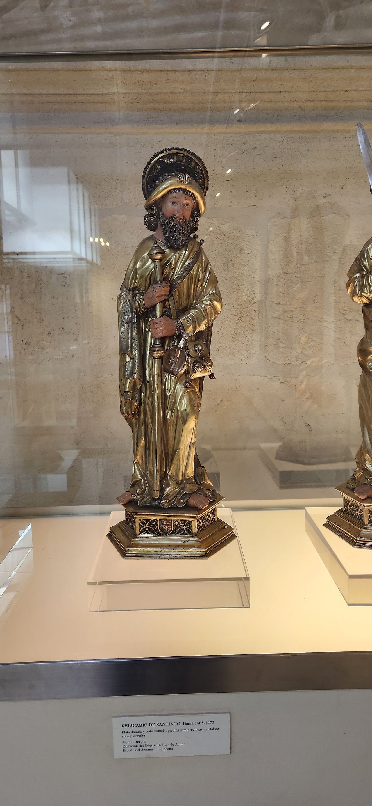 그리고 오늘도 수많은 인물 가운데 찾아낸 우리 순례자들의 원픽 산티아고(야고보) 선생님. 역시 지팡이, 가리비, 물병을 들고 계셨다. 옆에는 페드로(베드로) 성인과 파블로(바오로) 성인 작품이 함께 있었는데 베드로의 상징물이 열쇠인건 익히 알았고, 파블로 성인은 아마도 칼인가보다. 도상학이라고 하던가. 예술작품에서 상징물이나 특정 장면으로 캐릭터를 추리하는 것도 상당히 흥미로운 것 같다. 다른 분들은 몰라도 우리가 찾아가는 도시이기도 한 산티아고 성인은 이제 곧잘 찾을 수 있을 것 같다.