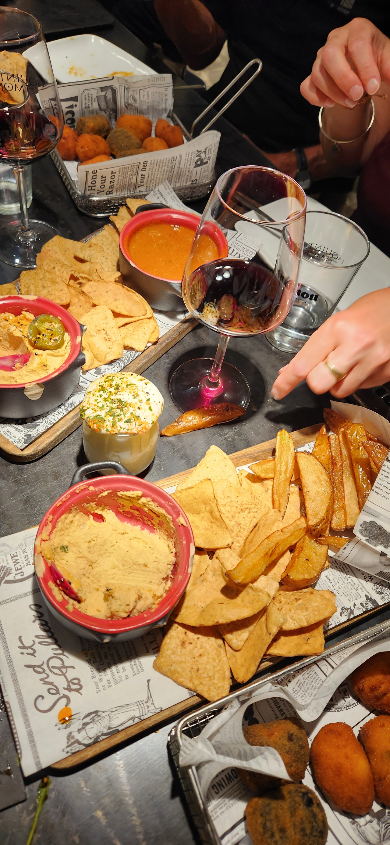 타파스는 굉장히 캐주얼하고 경계가 없는 음식인지, 이제 아시아 스타일도 많이 시도하고 있나보다. 첫 날 여럿이서 간 타파스 바에서는 이것저것 대여섯 종류가 나오는 타파스 세트를 시킬 수 있었다. 주문해보니 세트의 구성에는 감차튀김이나 나초같은 비교적 무난한 메뉴와 더불어 참치 타다키도 있었고 야끼소바도 있었다. 타다키는 과일소스가 곁들여 나오는데 의외로 상당히 잘 어울렸다. 타파스 세트는 한국으로 치면 모둠안주를 시키고 술한잔 하는 것과 비슷하여 새롭고도 익숙했다.