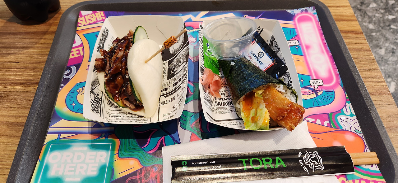 부르고스에서는 음식도 맛있었는데, 다소 재미있는 조합의 아시아 음식점도 있고 꽤 괜찮은 타파스 바에서 이것저것 시도해 보기도 했다. 숙소 바로 앞에 있길래 찾아갔었던 TORA라는 식당은 아시아 스트리트 푸드바를 지향한다는데 퓨전 한식 일식 중식을 모두 판다. 마끼에 스윗칠리소스가 올라가 있는 등 대단히 근본이 없지만 나름 신선한건가..(?!) 뭐 간만에 아시아 풍미를 느낀다는데 의의를 두자.