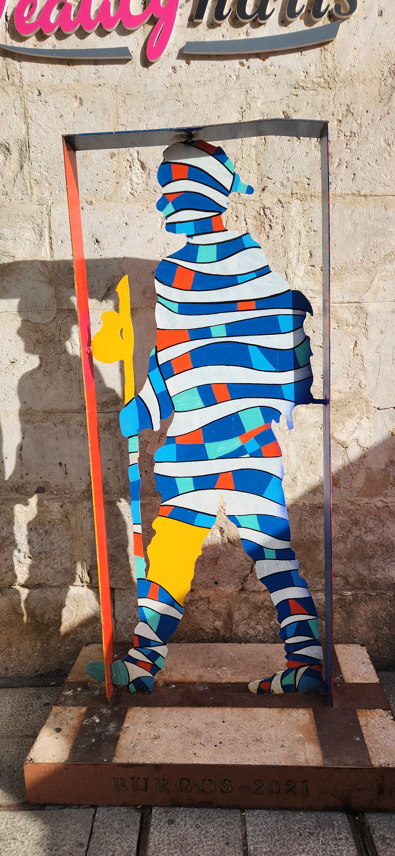 산티아고 길의 중요한 도시인 만큼 지나가다보면 순례자를 형상화한 입간판같은 전시물이 길에 자주 눈에 띈다. 순례자가 지나가야 하는 카미노 경로 상에 놓여있어 복잡한 도시에서 노랑 화살표를 대신하기도 한다. 보면 제각각의 아이디어가 재미있기도 하고 순례자로서 반갑기도 하다.