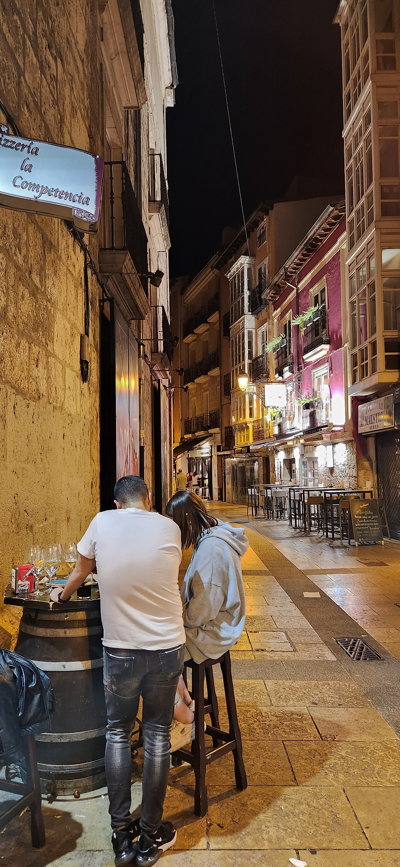 어둡고 한가해진 도심의 노상 바에서 무이비엥한 맥주를 홀짝이고 있는데 있는데 누군가 슬쩍 말을 걸어 온다. 모르는 얼굴. 이야기를 들어보니 카미노 걷고있냐고, 자기도 내일부터 부르고스에서 시작해 순례를 시작할 순례객이라고 반갑다고 한다. 맨날 입는 추레한 평상복에 슬리퍼 차림인 우리의 행색은 이제 누가 봐도 산티아고길 걷는 사람처럼 보이는 거로군. 자연스럽게 합석해서 같이 맥주 한잔을 했다.