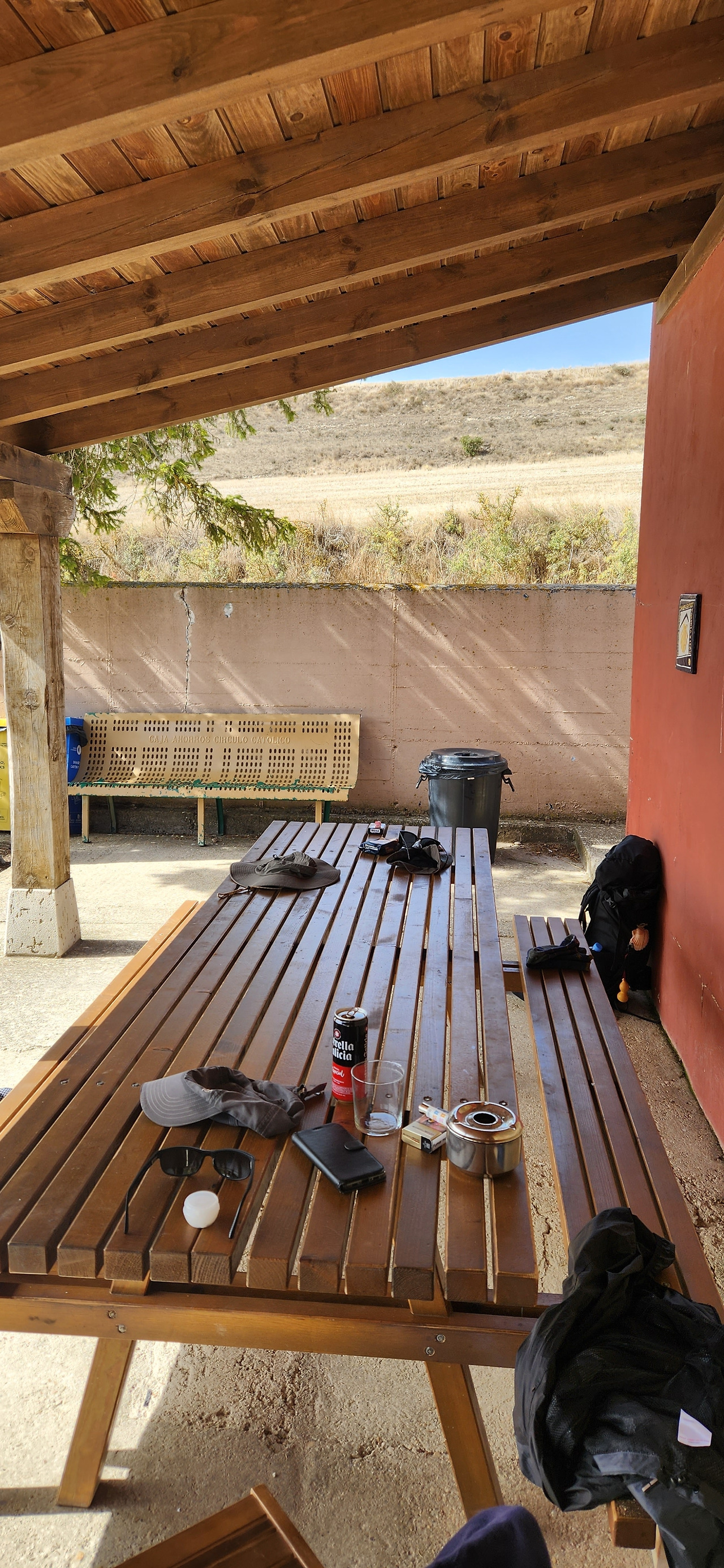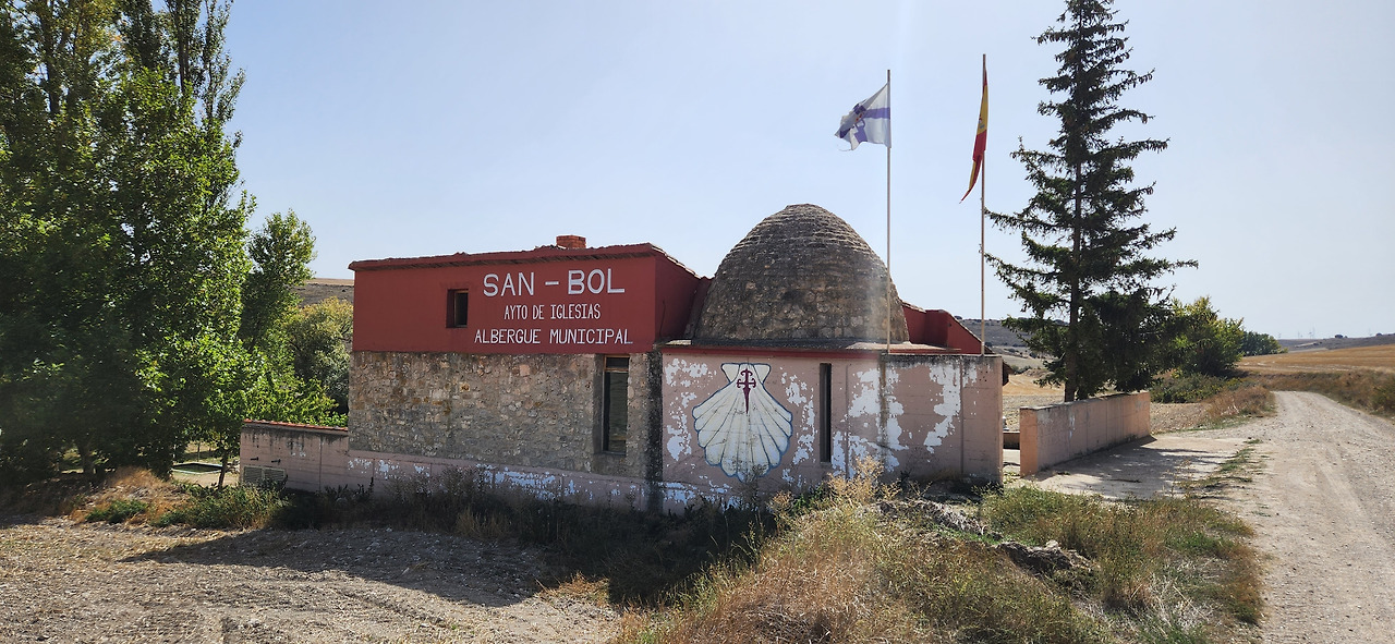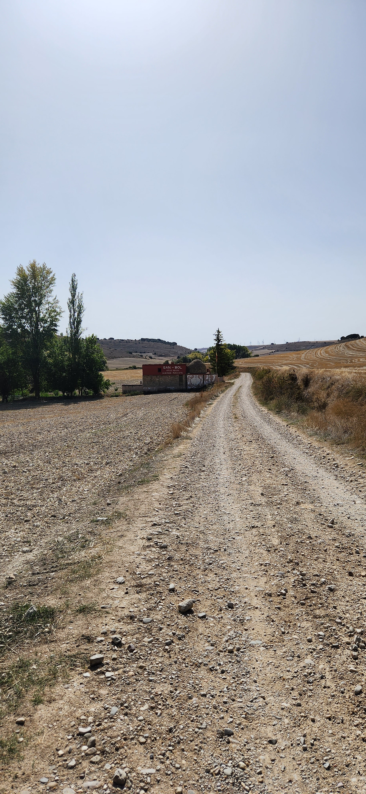 그렇게 정신줄을 놓.. 아, 아니 셀프 뮤직비디오를 들으며 걷고 나니 오늘의 목적지인 산볼 알베르게가 보였다. 여기는 마을은 아니고 황량한 길 한가운데 알베르게만 있는 곳이다. 벌판 한가운데이니 주변에는 식당이나 다른 시설도 없다. 아무것도 없는 것을 경험하고픈 사람들에게 또는 황야의 한 가운데서 순례길의 하룻밤을 보내고 싶은 사람들에게 나름 인기가 있는 곳이라고 한다. 도착해 물어보니 다행이도 오늘은 자리가 있다고 한다.