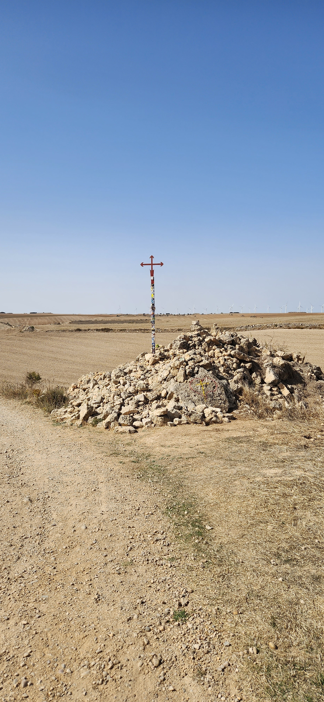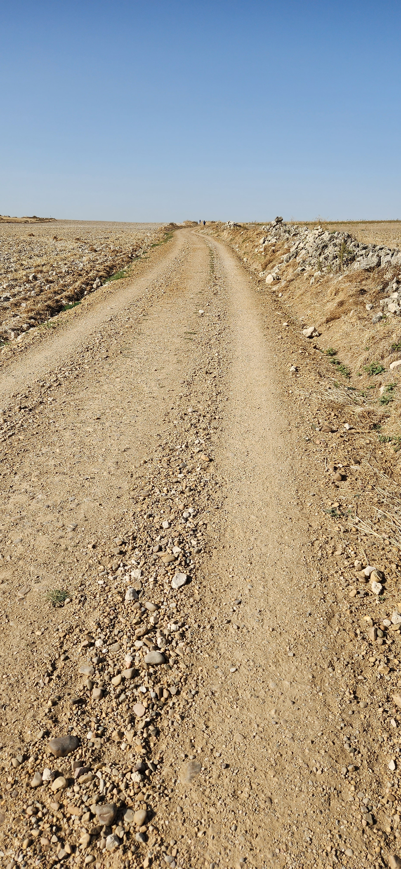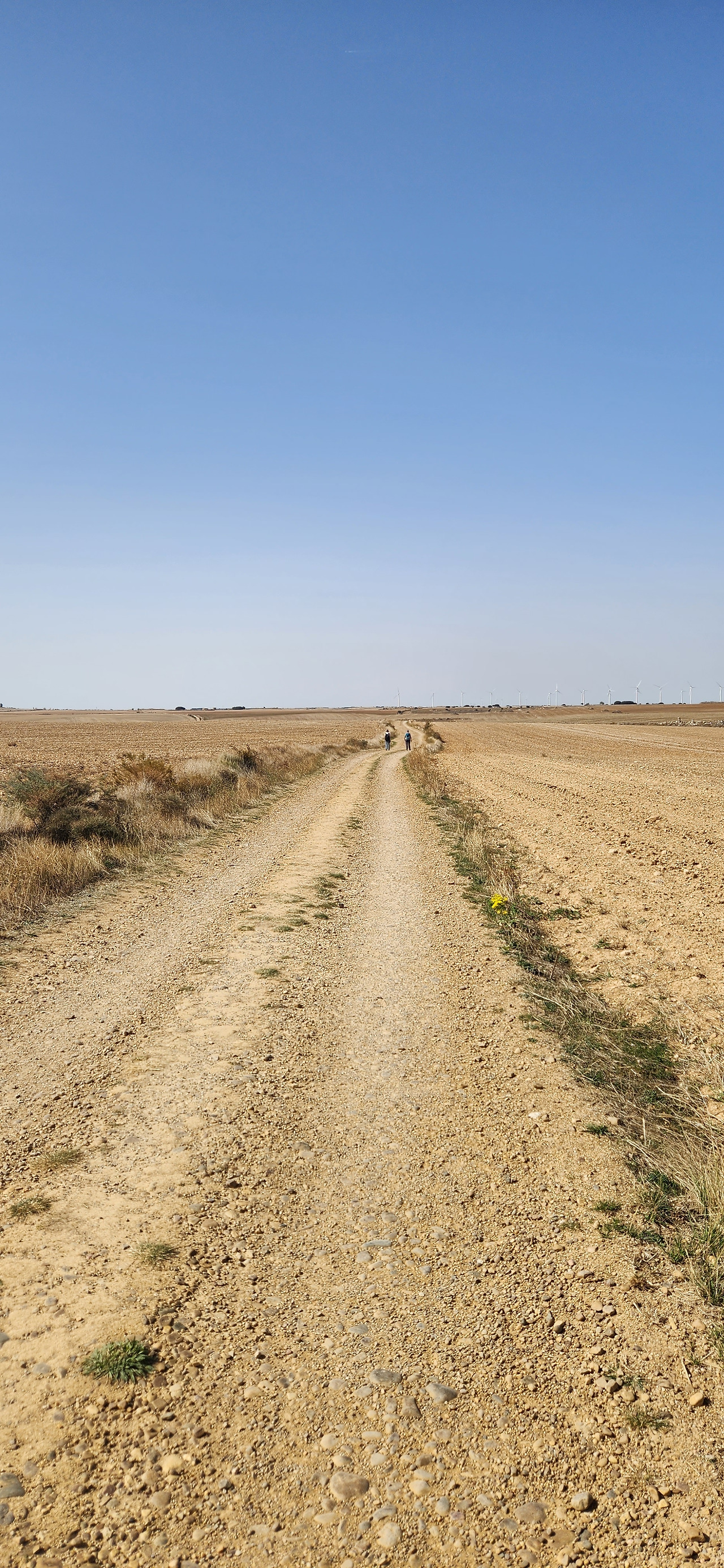 메세타 고원은 스페인 이베리아반도 한복판에 있는 고원으로, 우리가 걷는 길은 해발 7~800미터 정도를 유지한다. 그야말로 황량하고 광활한 곳. 많은 부분은 밀밭인것 같지만 수확이 끝나 생명감은 찾아볼 수 없고, 길도 무지무지 건조해 먼지가 풀풀 날리고 작은 돌멩이가 가득해 미끄럽다.