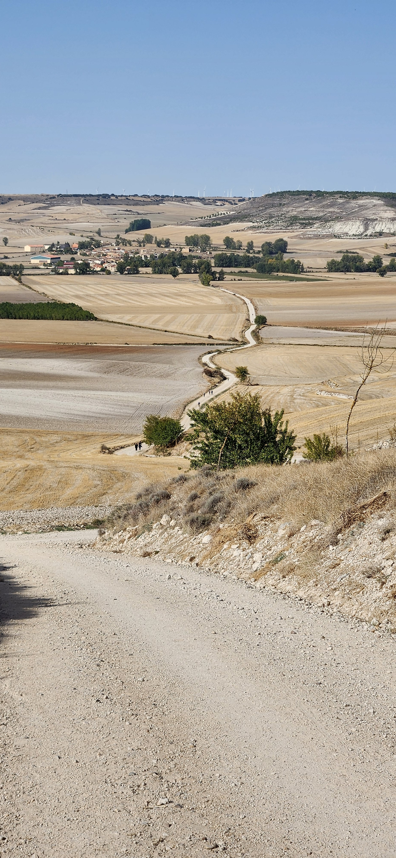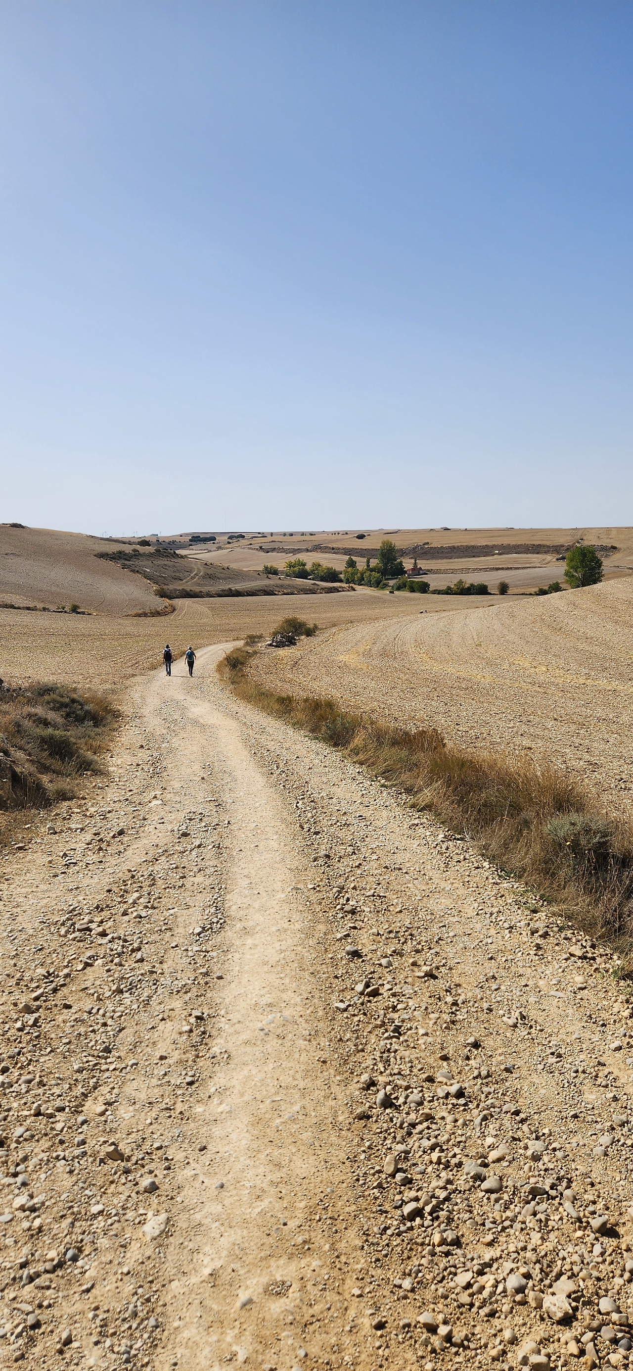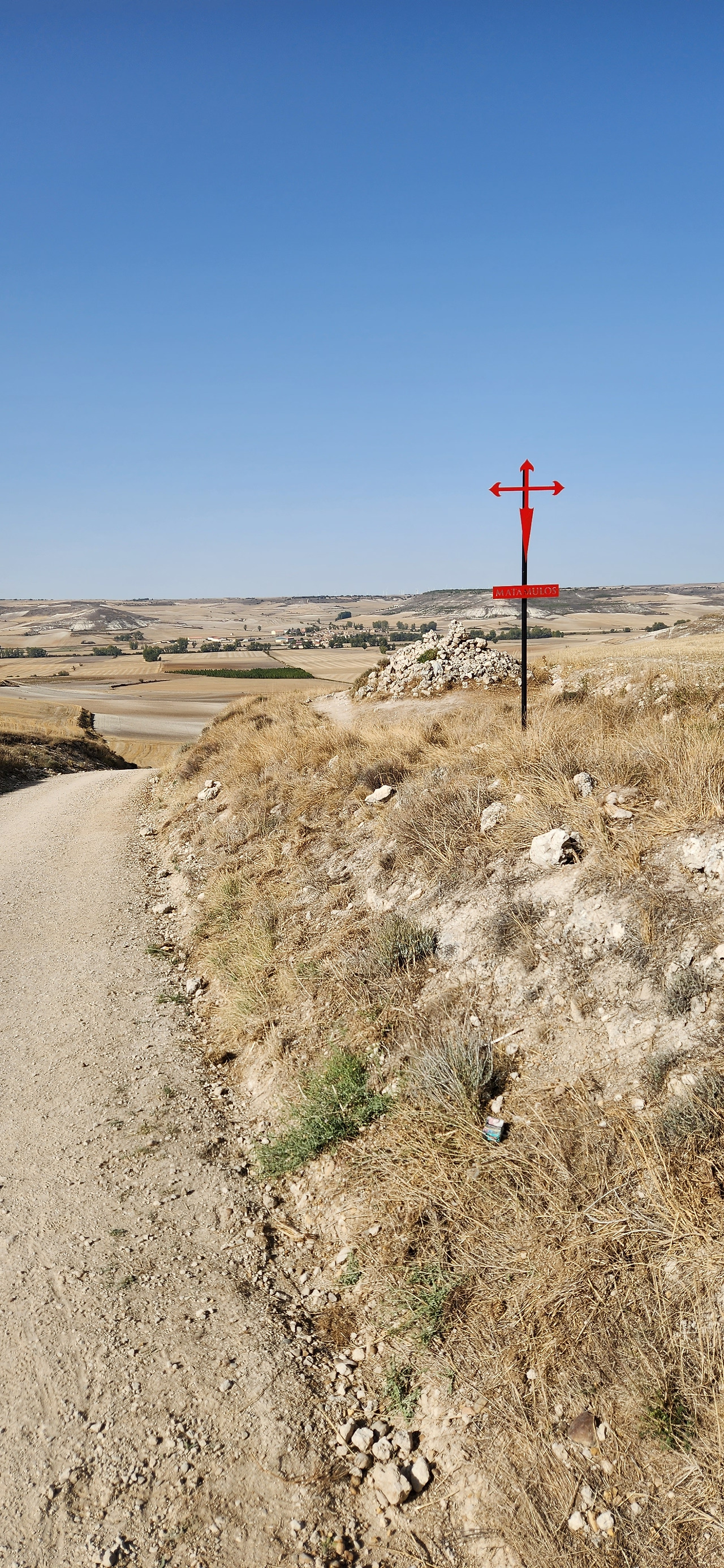 메세타 고원은 스페인 이베리아반도 한복판에 있는 고원으로, 우리가 걷는 길은 해발 7~800미터 정도를 유지한다. 그야말로 황량하고 광활한 곳. 많은 부분은 밀밭인것 같지만 수확이 끝나 생명감은 찾아볼 수 없고, 길도 무지무지 건조해 먼지가 풀풀 날리고 작은 돌멩이가 가득해 미끄럽다.