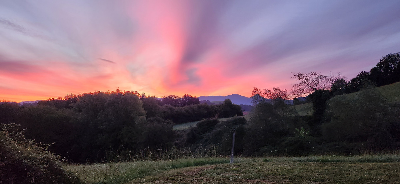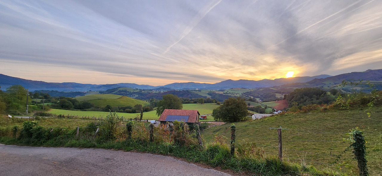 노란색 화살표를 따라 시작한 첫걸음. 쌀쌀한 새벽녘에 출발을 했는데 걷다보니 천천히 동이 트고 빠르게 날씨도 풀려갔다. 다소 춥긴 해도 서울의 매서움보다는 온순하다. 오르막도 비슷한 느낌으로 순한맛이다. 가파르게 치고나간다기 보다 완만하게 꾸준히 천천히 계속 올라가는 길이었다. 사실 본격적인 오르막은 중반 이후에 나왔던것 같은데, 그때쯤 되면 피레네 산맥의 봉우리며 능선이 아주 멋지게 펼쳐진다.