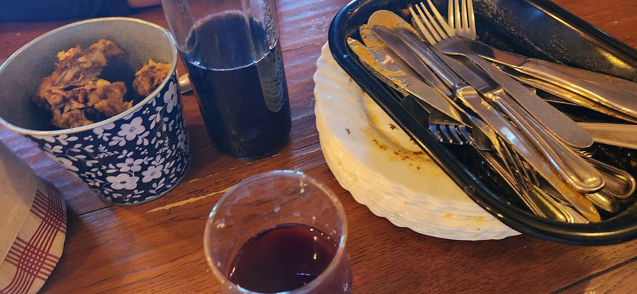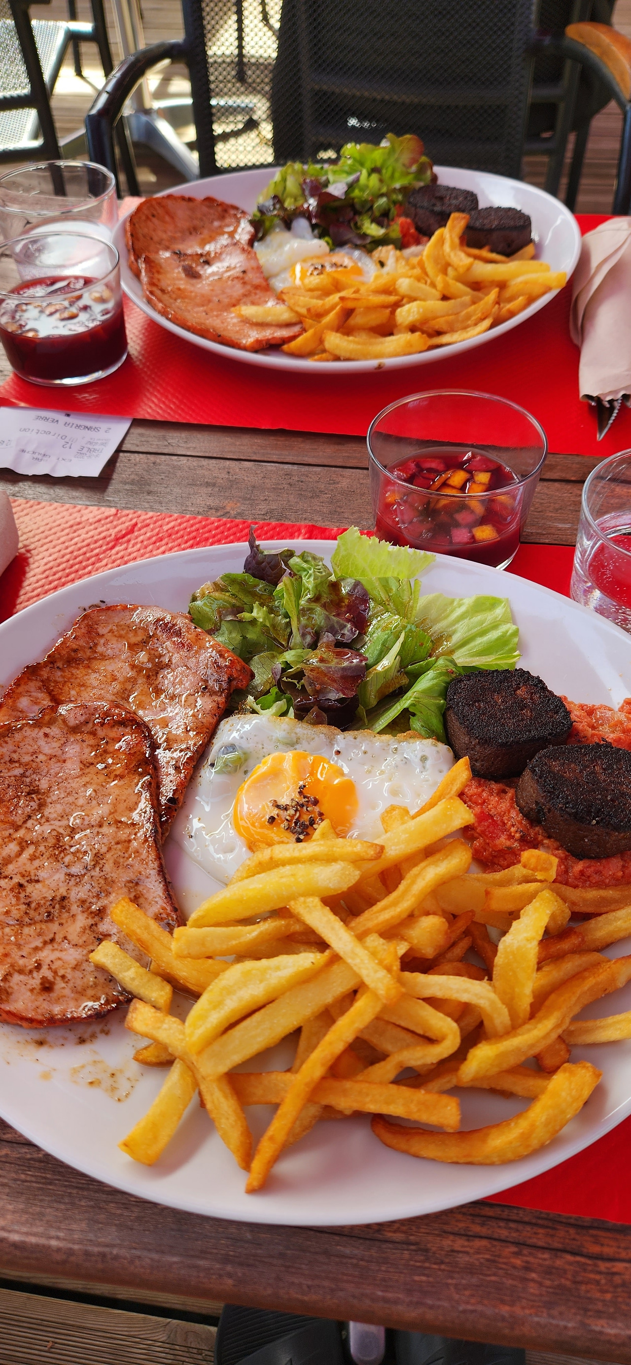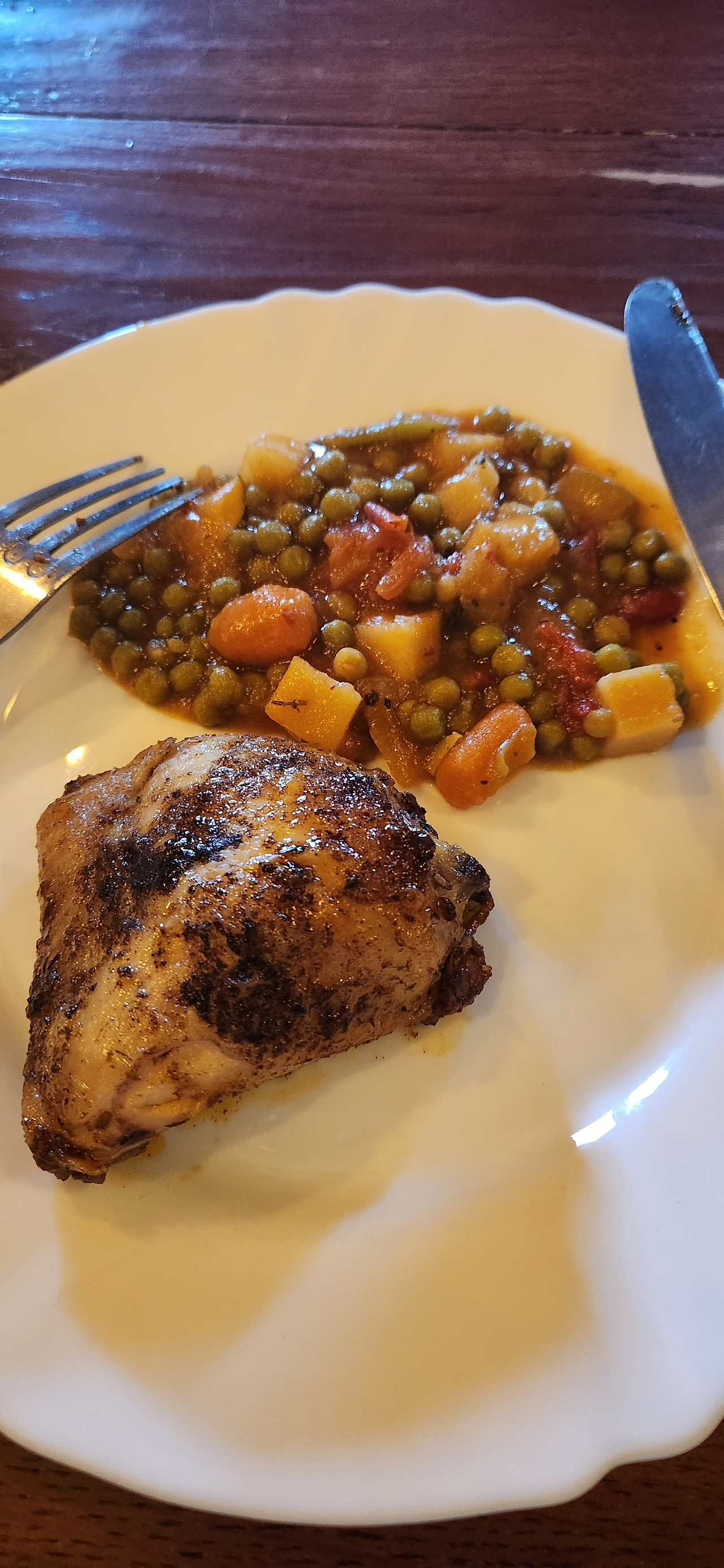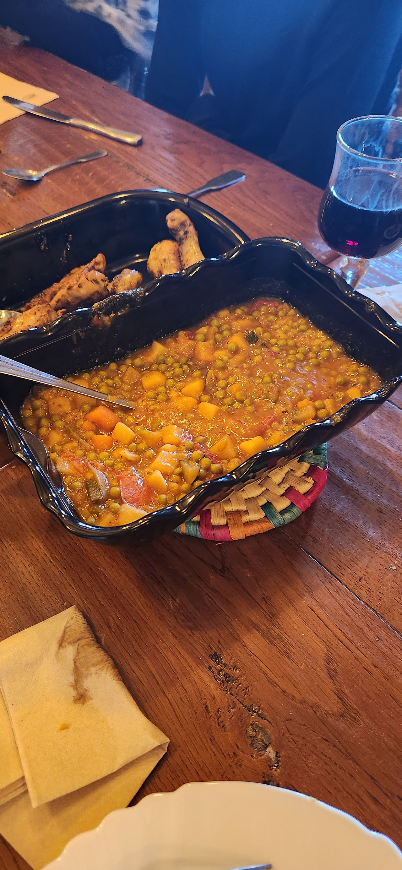 노곤노곤해서 낮잠을 살짝 자고 일어나니 어느새 저녁시간. 저녁식사는 산장 예약에 내일 아침식사와 더불어 포함되어있는데 야채수프, 닭고기와 채소, 커스터드크림이 들어있는 것 같은 파이랑 와인이 같이 나왔다. 처음보는 낯선 사람들과 마주앉아서 식사를 한다. 테이블마다 적당히 덜어 먹으라고 큰 그릇에 뭉텅뭉텅 나누어준다. 아무래도 낯을 가리는지 다들 치킨을 한조각씩만 받고 더 안먹는 것 같지만 나는 한덩이 더 먹고 싶다. 적당한 타이밍에 염치 불문 한덩이를 더 덜어서 먹었다. (다들 안 덜어먹고 있었고 마지막 조각도 아니었단 말이지) 산티아고 길의 음식은 별로라고 소문 들었던거와는 달리 첫날은 계속 잘먹고 있다.