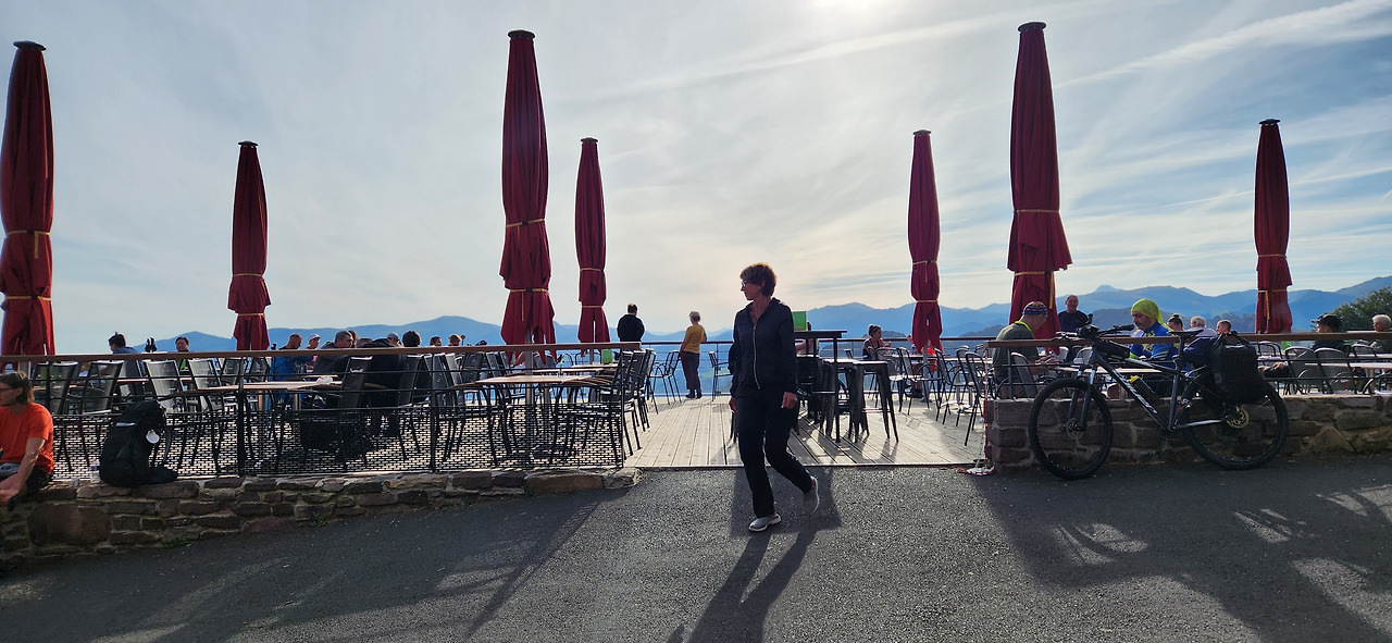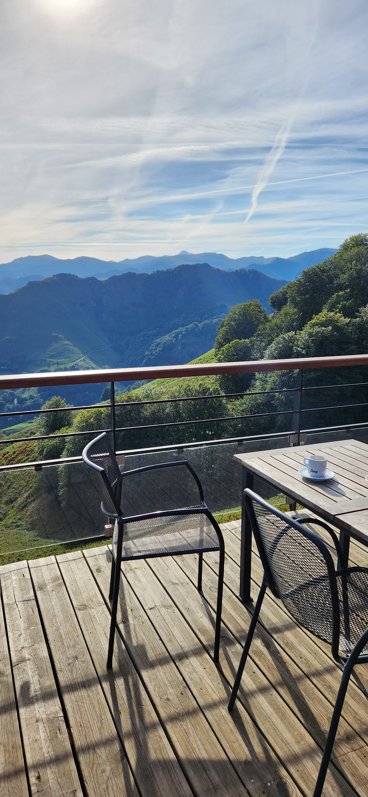 예정보다 조금은 빠르게 10시 반쯤 목적지에 도착을 했다. 오리손 산장은 알베르게로도 쓰이지만 지나가는 순례객들이 쉬어도가고 주변 주민들도 자주 놀러오는 곳인듯 하다. 사람들로 굉장히 붐볐다. 산맥 전망 뷰의 테라스 공간이 특히 멋져서 이름난 곳일 듯 한데 예전에 갔던 호도협의 객잔 이후로 최고의 식당뷰였던것 같다. 날씨마저 완벽했다. 너무 일찍 도착해서 아직 체크인도 할 수 없어 뷰맛집 테라스에서 커피한잔 하면서 경치도 구경하고 지나가는 사람도 구경했다.