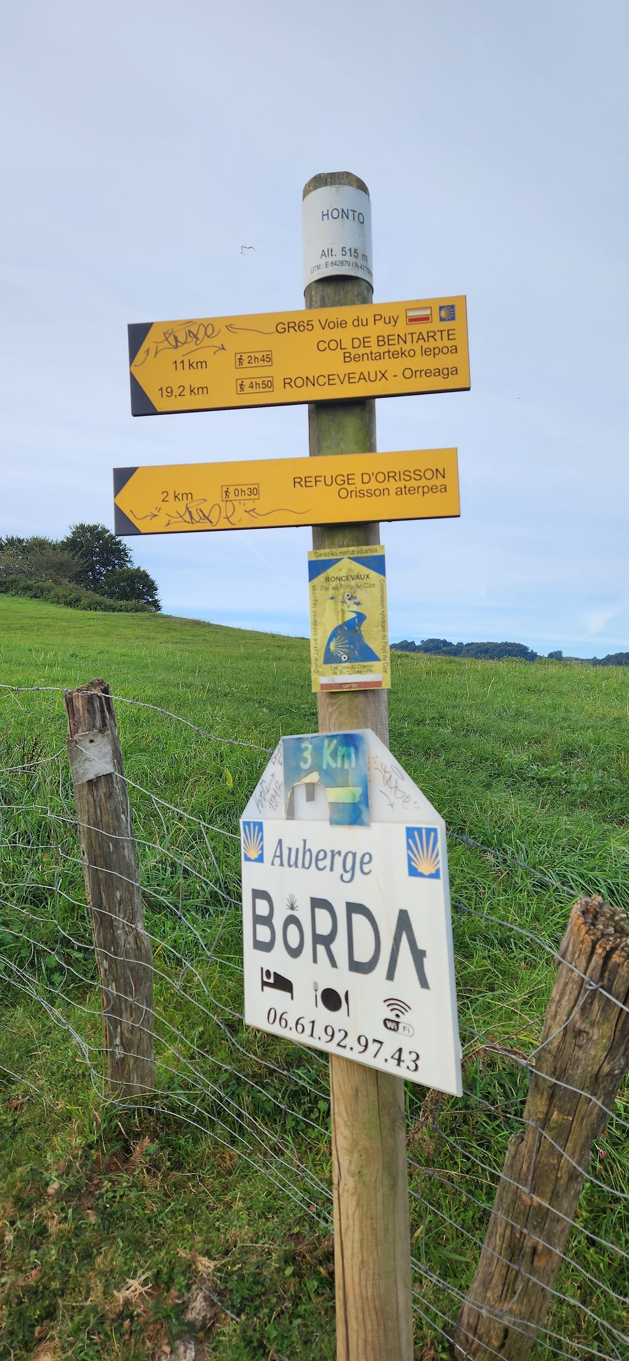 평지는 몰라도 여정의 처음부터 그 정도는 좀 무리지 않을까 싶은 사람들은 중간에 한번 쉬어서 이틀에 걸쳐 피레네 산맥을 넘는다. 약 1/3 지점에 오리손 산장과 보르다 산장이 서로 멀지 않은 거리에 있고, 나는 오리손 산장에 예약을 해놨다. 알고 보니 보르다 산장은 거의 서너 달 전에 미리 예약을 해야 한다고 한다.