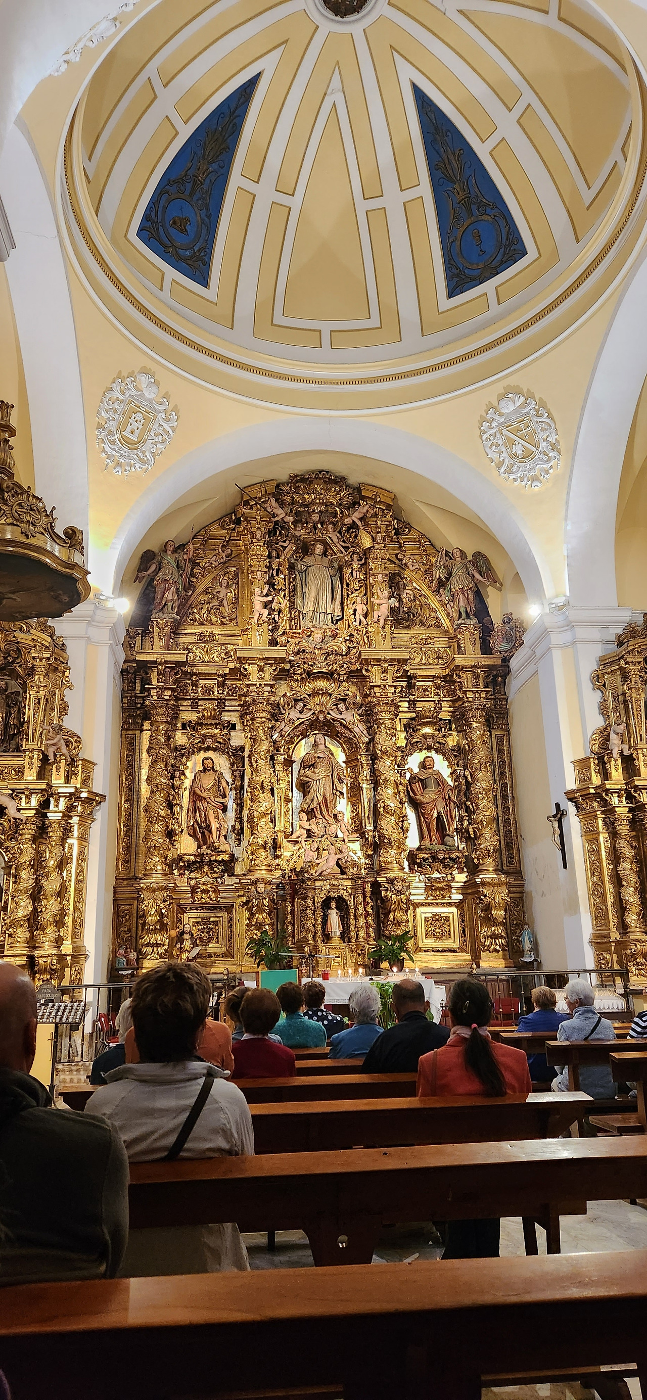 노래의 시간이 끝난 직후 7시에는 마을의 성당에서 미사가 있었다. 순례자들만을 위한 미사는 아닌데 말미에 순례자들을 앞으로 나오라고 한 뒤 안전한 길을 기원하는 축복을 해주었다. 순례길 마을에 있는 성당들은 이렇게 매일 저녁 미사에 순례자를 위한 기도 시간이 있는 경우가 많은가보다. 순례자들이 앞으로 나와서 서있으면 신부님과 수녀님이 순례자들 한명 한명 돌아가며 머리를 만져주면서 아이 블레스 유 같은 말로 안녕을 기원해 주었다.