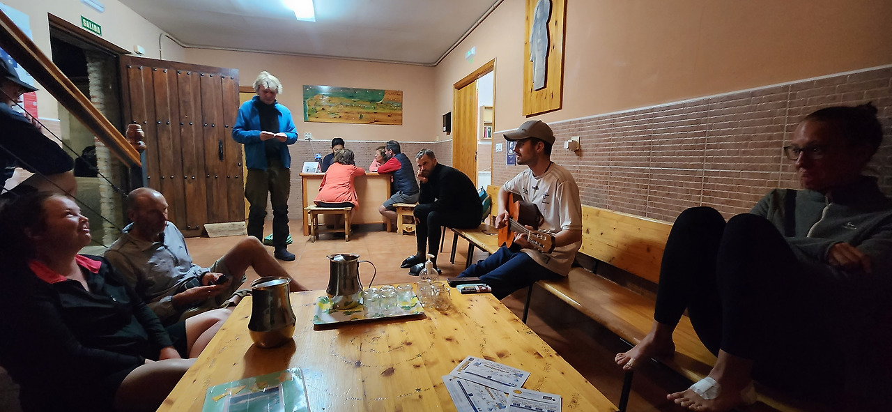 종이에는 아쉽게도 한국어 노래는 없었는데, 한국에서 왔다고 하니 수녀님들이 아리랑을 아냐고 물어본다. 물론 알지요 모를수가 없지요. 인자한 수녀님의 미소와 함께 갑자기 사방에서 훅 들어오는 기대에 찬 시선. 한국인은 나 말고도 한분이 더 계셨다. 우리는 갑자기 무반주로 20여명의 생소한 사람들 앞에서 아리랑을 불러야 하는 상황이 되었다. (대체 이 메세타 한가운데 아리랑은 언제부터 전파된걸까)