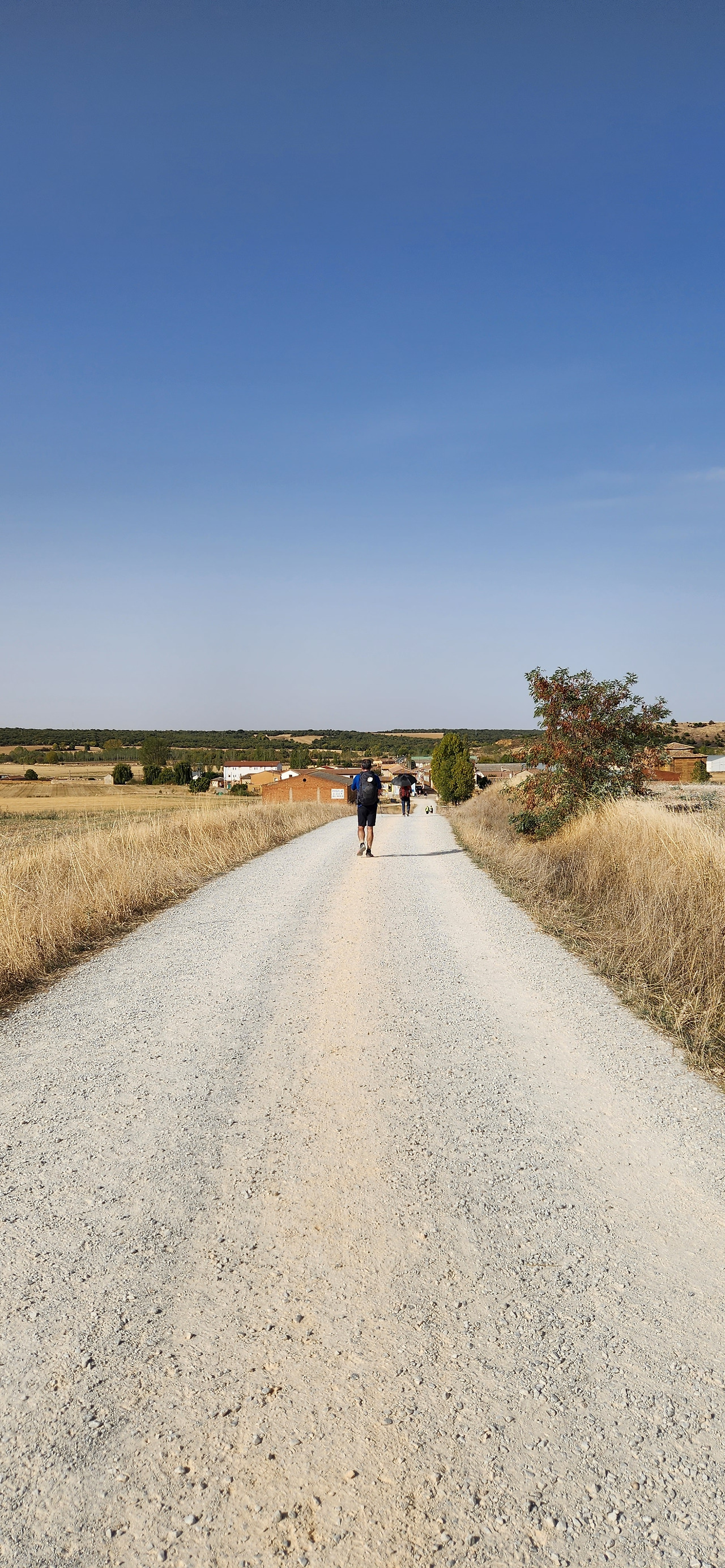 끝없는 직선길을 한참 어기적대면서 가는데 오늘도 마커스가 지팡이를 짚고 (등산 스틱이 아니라 순례자 관광굿즈같은 커다란 나무 지팡이다. 길 초반에 주워서 계속 쓰고 있다고 한다) 어느새 뒤에서 나타나 여느날처럼 유쾌하게 인사를 건네주었다. 이 친구는 슬쩍 우울할 만 하면 갑자기 나타나서는 멘탈 게이지를 돌봐준다. 한동안 맞추어 걷다가 수풀 화장실도 갈겸 마커스는 먼저 보내고 곧 따라간다고 하고 조금 더 천천히 마저 걸었다.
