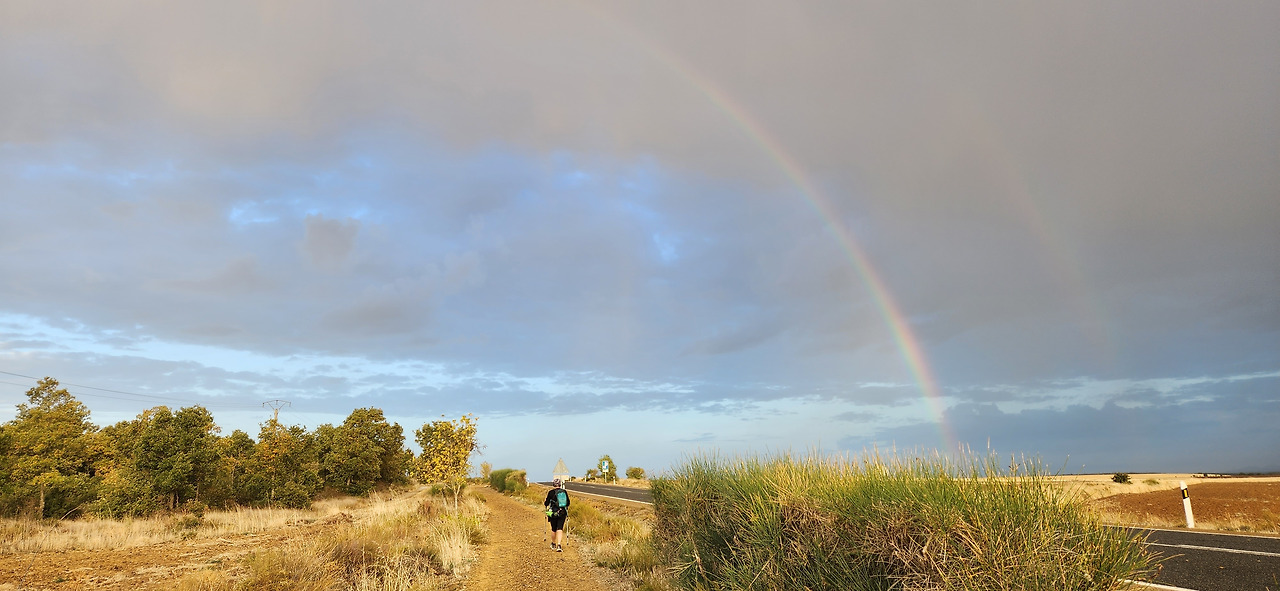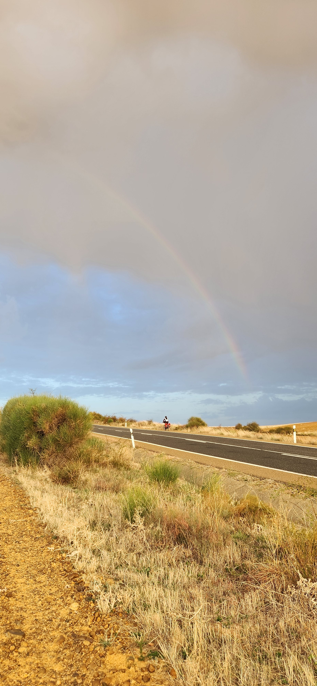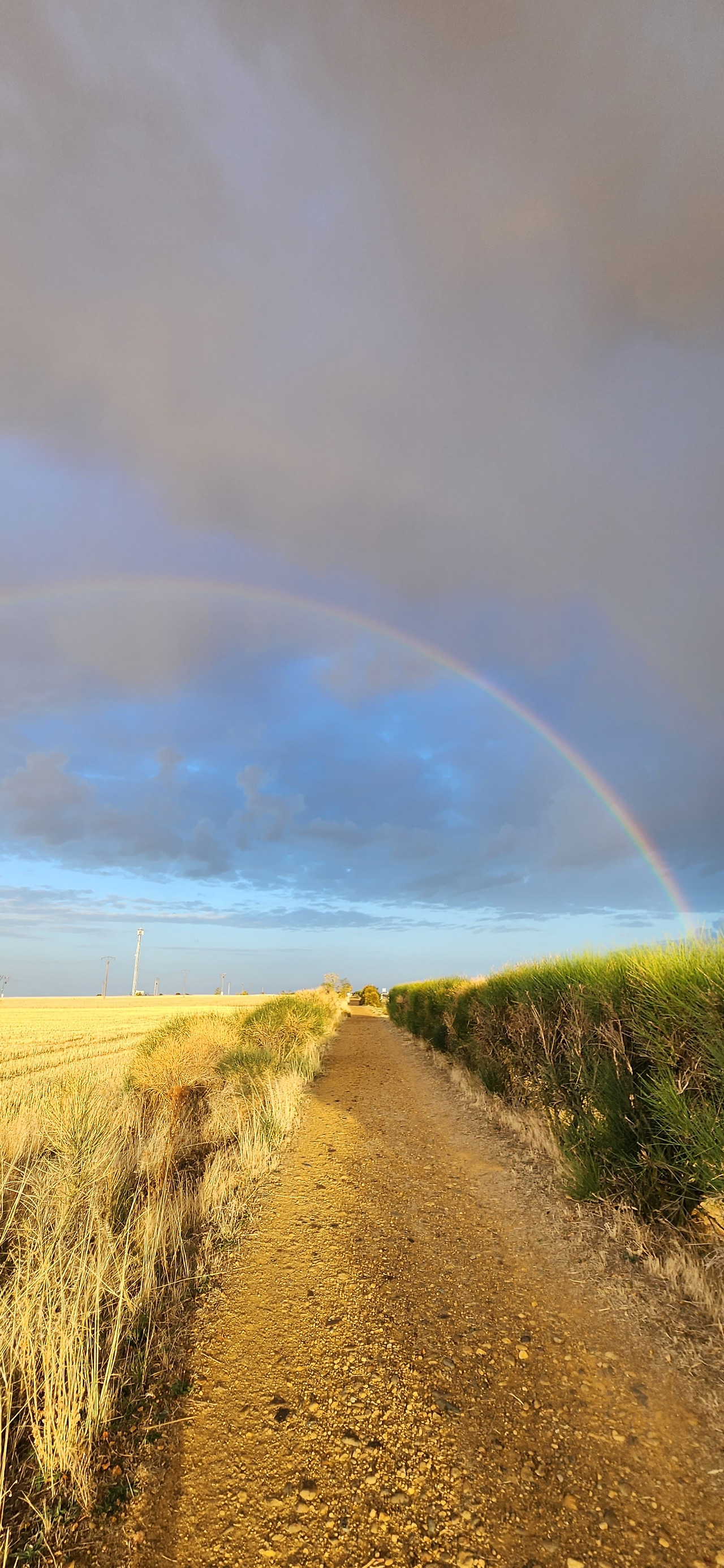 이번주 메세타 길은 너무 힘들었는데 한편으로는 최고의 순간도 함께였다. 산볼에서 출발한 별이 가득한 까만 밤하늘도 광야 한가운데 지구인지 화성 어딘가인 싶은 황량한 풍경도 최고였고, 지금 본 지평선에서 지평선으로 떨어지는 완벽한 반원의 무지개도 그랬다.
