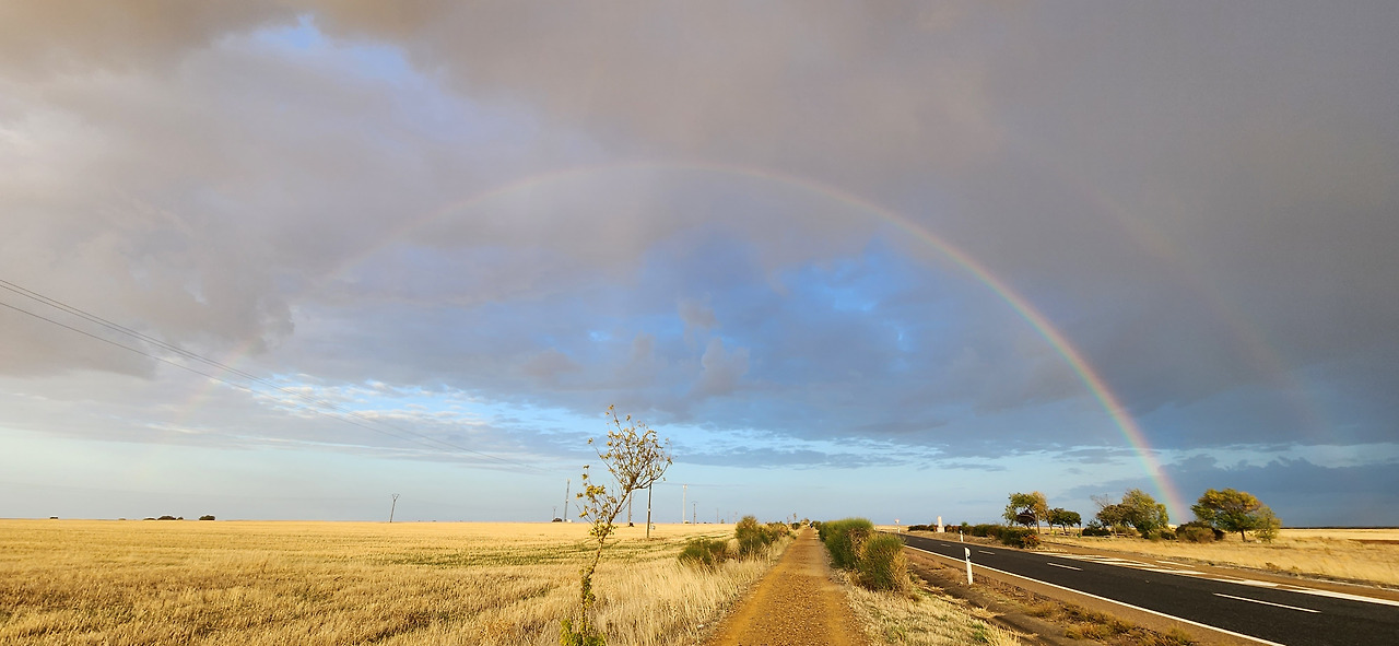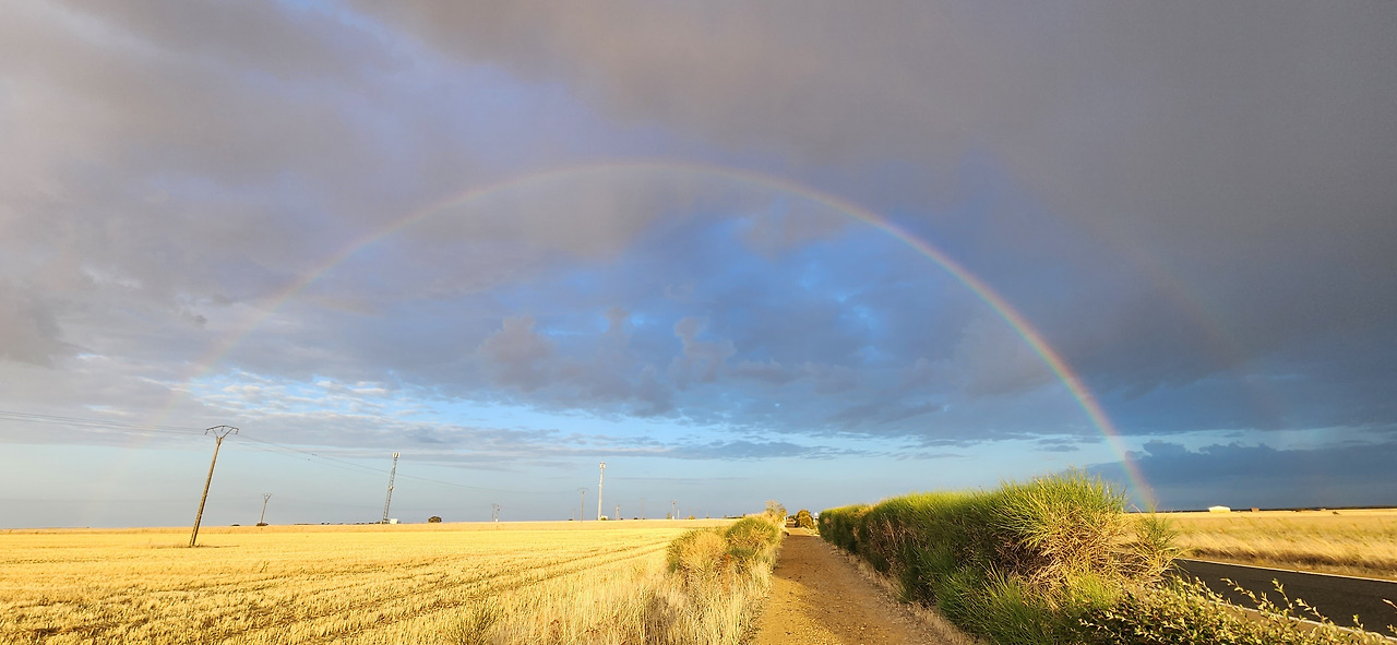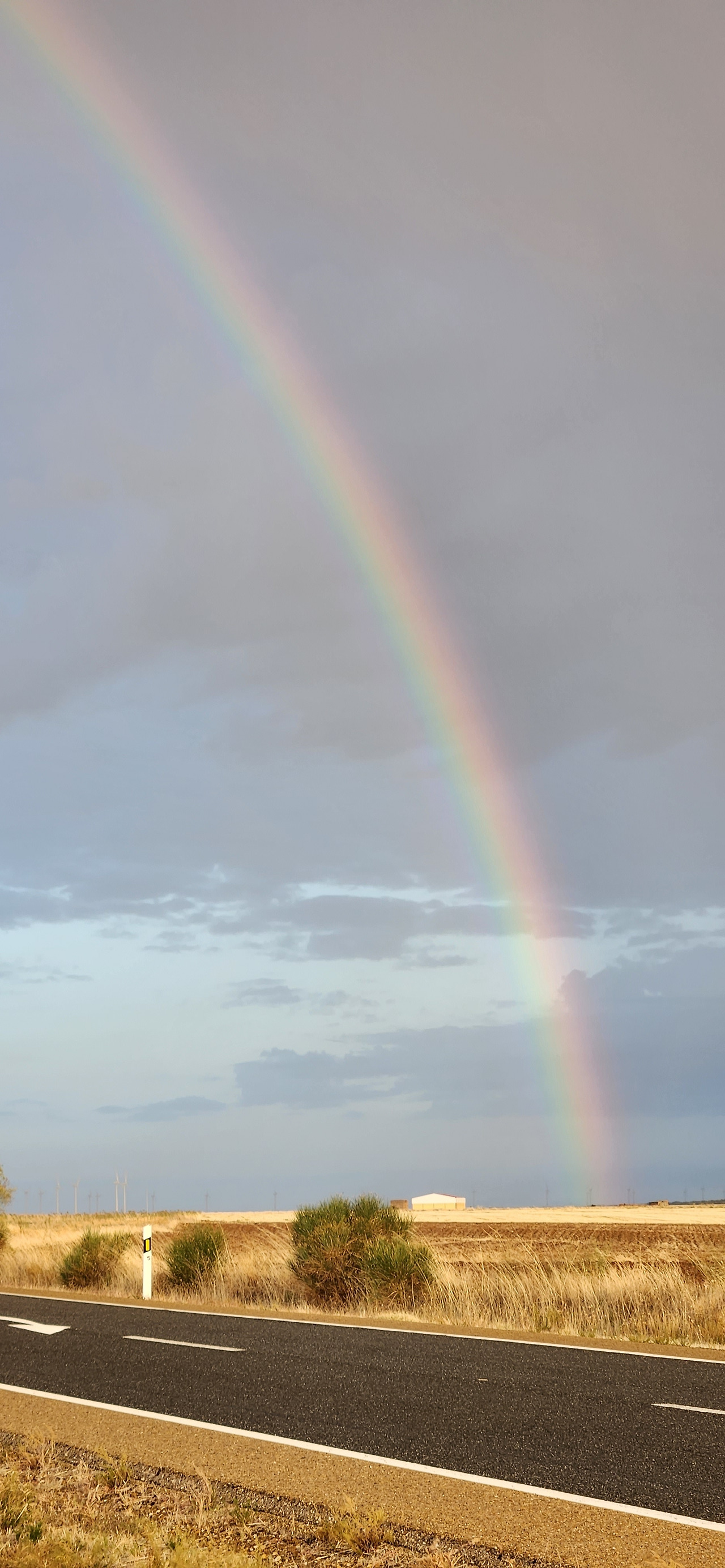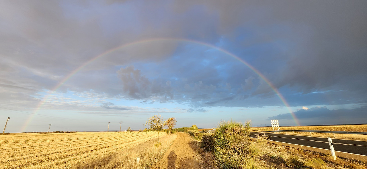 이번주 메세타 길은 너무 힘들었는데 한편으로는 최고의 순간도 함께였다. 산볼에서 출발한 별이 가득한 까만 밤하늘도 광야 한가운데 지구인지 화성 어딘가인 싶은 황량한 풍경도 최고였고, 지금 본 지평선에서 지평선으로 떨어지는 완벽한 반원의 무지개도 그랬다.