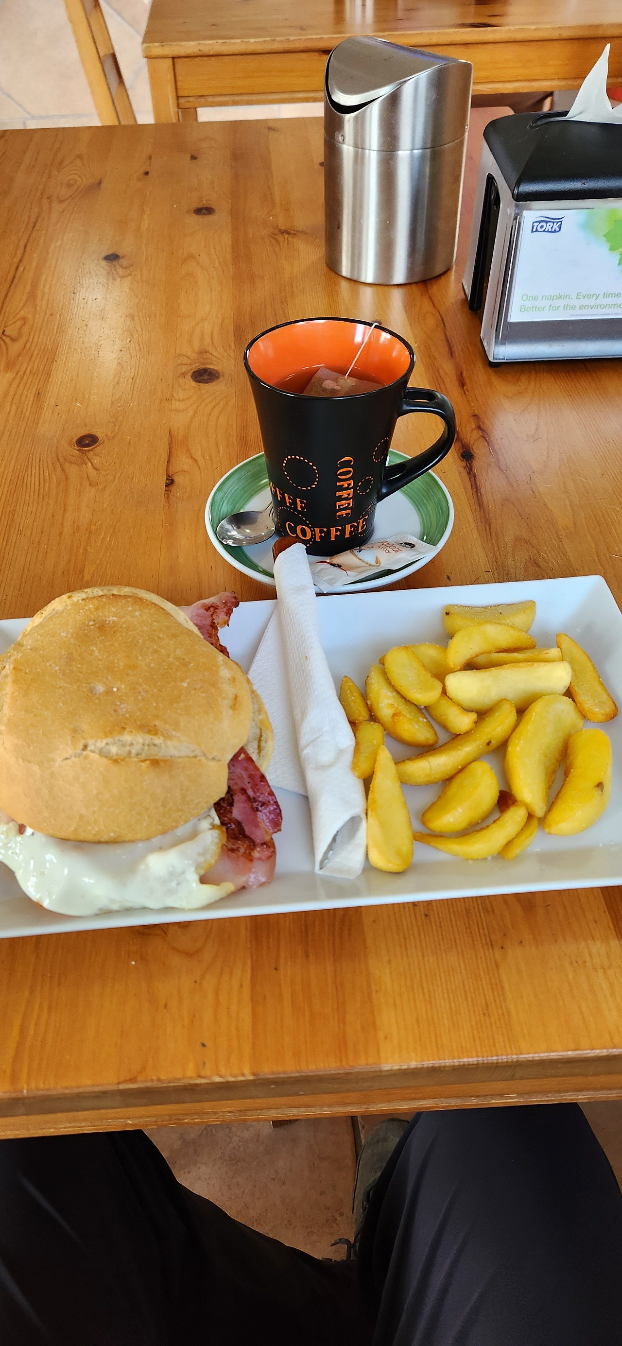 그렇게 중간에 잠시 쉬러 멈춘 바에서 메세타와 헤어질 결심을 굳히고, 마침 오전에 나를 지나쳤던 순례자와 개도 마주쳤다. 반려견인줄 알았는데 물어보니 자기 개가 아니라 어제부터 따라왔다고 한다. (그리고 이후에 또 만나서 근황을 물었더니, 주인을 수소문해 찾았는데 개가 매우 불행한 몸짓으로 돌아갔다고)
