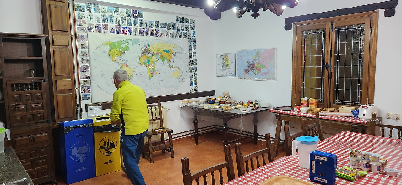 한국 사람이 하도 많이 오니 아예 별도의 큰 꼬레아 지도를 붙여놓으셨네. 그렇게 메세타의 마지막 밤은 소박하고 감사한 식사와 함께 지나갔다.