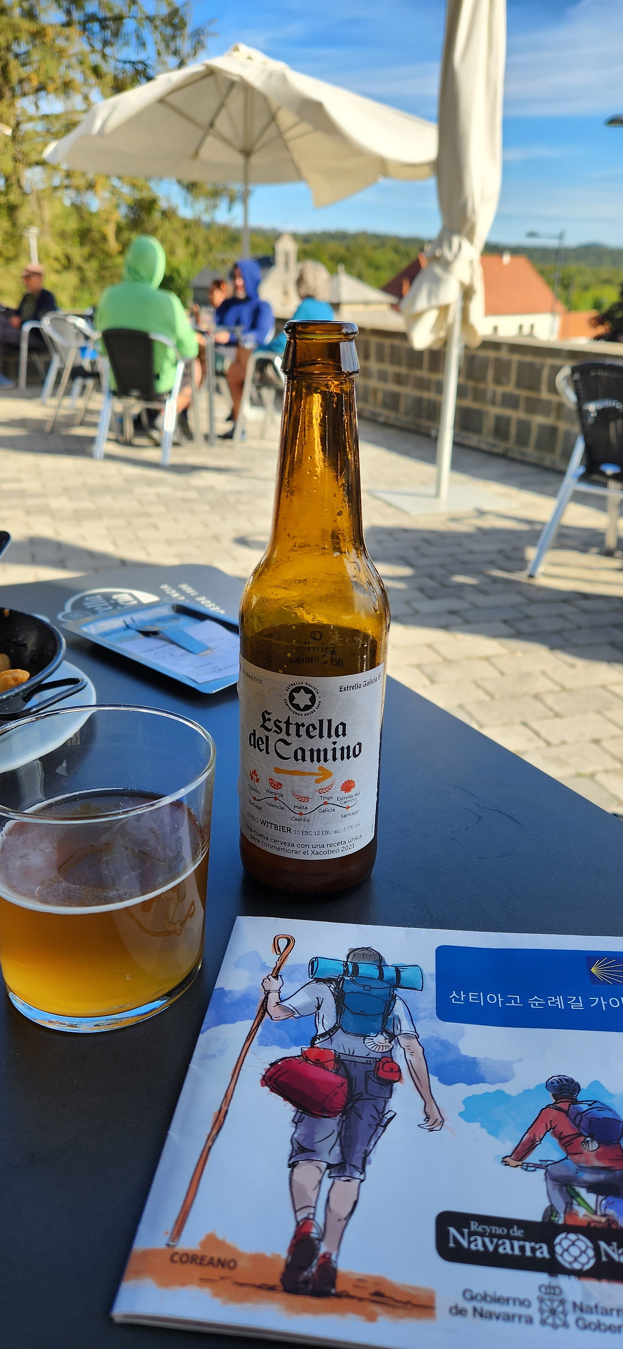 근데 사실 나는 원래 이것저것 먹어보고 신기한거 보이면 괜시리 한번씩 해보고 사보고 하느라 어차피 스무스하게 유로를 살살 녹여먹고 있어서 10유로 알베르게가 5유로로 돌아가도 쓰는 돈에 크게 차이는 없을듯 하다. 그래도 스페인 넘어오면서 맥주값이 싸진 부분은 매우 흐뭇한데, 오늘은 여기 바에서 무려 에스트렐라 데 까미노라는 어마어마한 카미노 특화 맥주를 발견해 바로 한병 사마셨다. 2.5유로밖에 안해서 또한번 그라시아스!