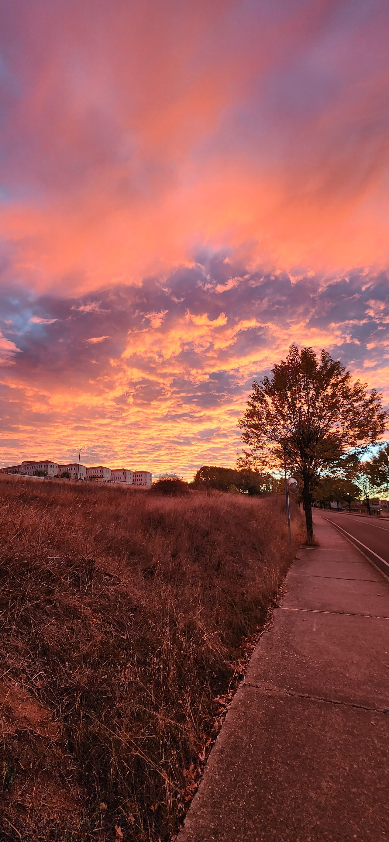 메세타를 빠져나오니 귀신같이 날씨와 계절감각이 돌아왔다. 가을의 나무와 선선한 아침 공기, 뜨는 해의 빛을 받은 발그레한 하늘.