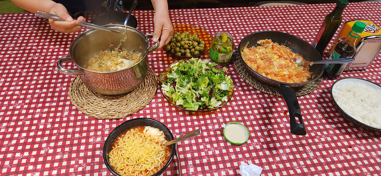 어제 같이 걸은 이선생님도 숙소에서 다시 만나서 마트에서 이것저것 함께 장을 봐온 뒤 오랜만에 케이 순례자 만찬을 완성했다.