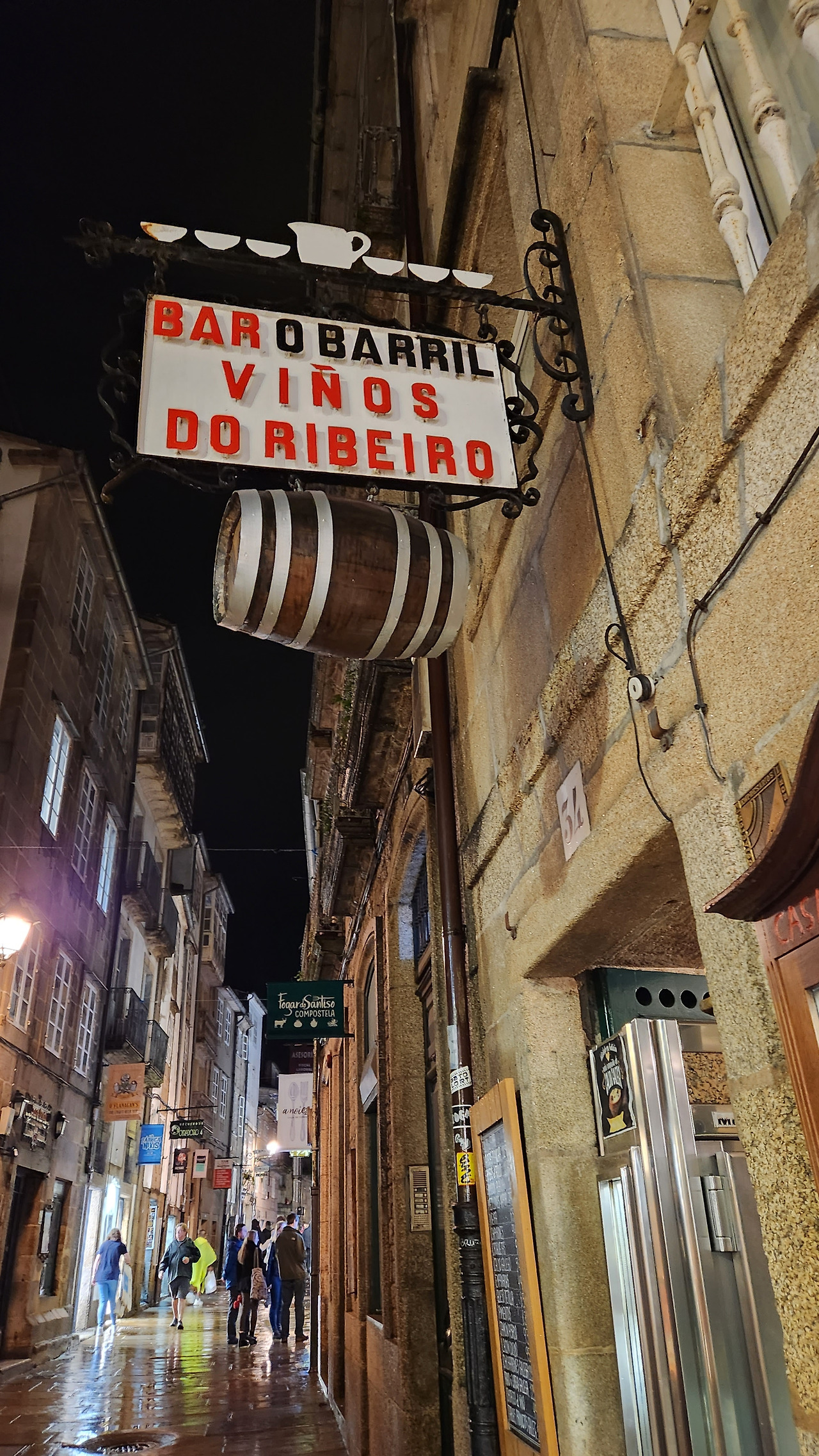 저녁이 되니 마커스는 피네스테레를 찍고 버스를 타고 돌아왔다. 만나서 마지막 저녁 겸 한잔을 하다가 아침에 피네스테레 및 8개마을 원데이 투어를 다녀온 브랜든 아저씨도 불러서 술통 간판이 달린 식당에서 자정까지 꽐라가 되었다. 식당을 나와서는 가방에 미리 준비한 와인을 꺼내 야밤에 성당 앞에서 한잔 더하는 로망도 선뵈여드렸지. (가끔 단톡방에서 안부 전할때 브랜든 아저씨가 야밤에 성당 앞에서 술꺼내는 크레이지 코리안이라고 여전히 그 사건을 좋아하고 있다)