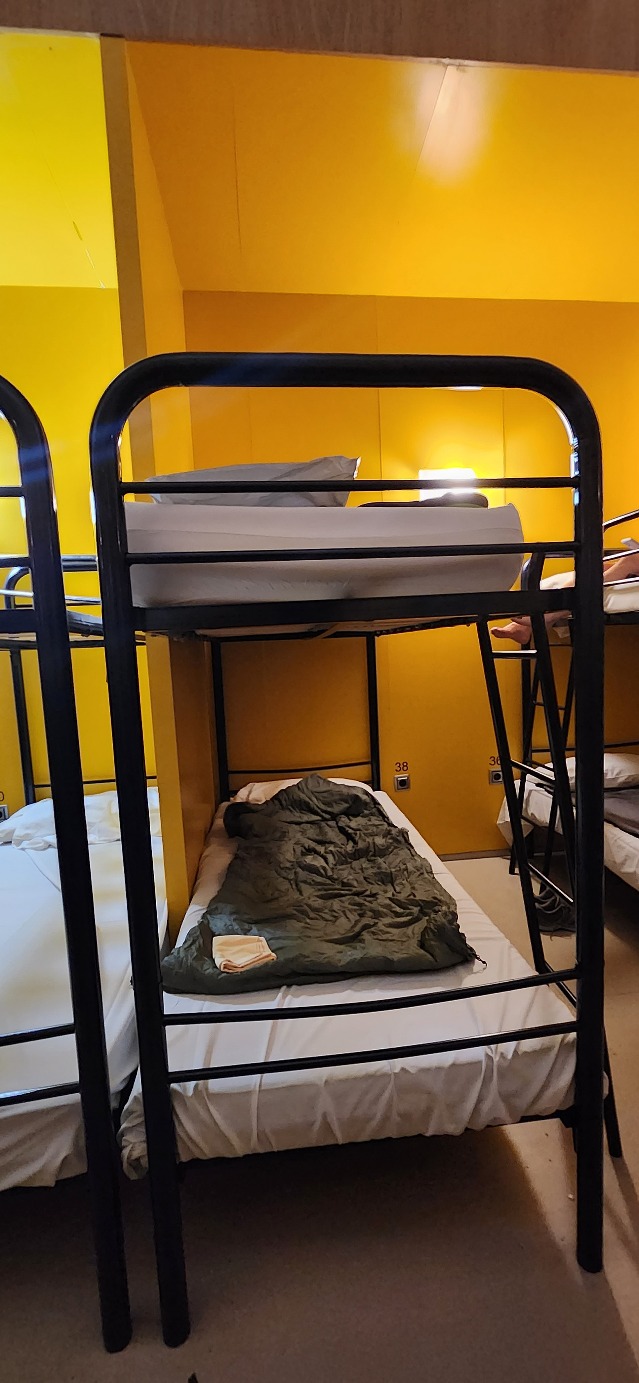 오늘 묵는 팜플로나 공립 알베르게는 굉장히 크고 많은 순례자들이 머물 수 있는 곳이다. 아무래도 관광도시라 숙소 값이 꽤 비싼 편이라 팜플로나만큼은 공립 알베르게에서 묵는게 좋다고 하여 열심히 일찍 와서 체크인을 했다. 숙소는 꽤 체계적으로 관리되는 것처럼 보이고, 개방된 2층 형태의 공간에 사람들이 와글와글하다. 자리에서 짐정리를 하면서 옆에 있는 순례자들이며 저쪽에 보이는 무리들과 인사를 나눈다. 스페인 사람 실비아 부부와도 인사를 했는데 한 5~6명 정도의 그룹으로 보인다. 저쪽 구석에서 씨끌버끌하다. 친구들이랑 수학여행을 온 듯한 조금은 설레는 기분이 든다.