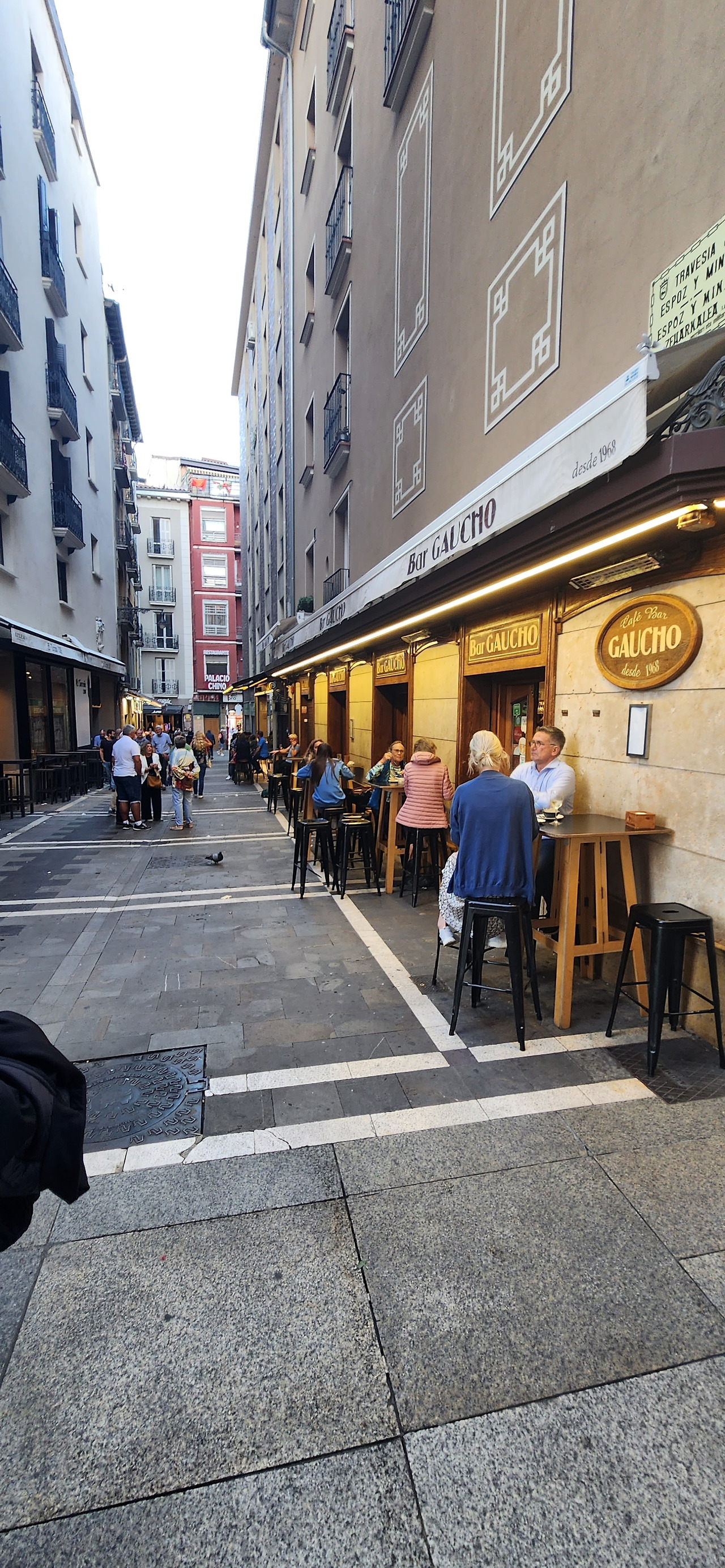핀초스 바는 스페인에서 흔히 만날 수 있는 선술집으로 맥주나 와인 등 술 한잔에 두어가지 안주를 곁들여 간단히 먹을수 있는 곳이다. ( 타파스 바라고도 하고 타파스와 핀초스는 거의 비슷한데 무슨 차인지는 확실히 모르겠다.) 팜플로나, 특히 우리가 머물고 있는 구도심같은 곳은 관광의 중심인 만큼 구석구석 많이 찾아볼 수 있고 핀초스 바가 모여있는 거리도 있다. 가게의 유리 진열장에 조리된 음식이 보이기 때문에 음식 이름을 몰라도 적당히 가리키면서 이거 주세요 하고 주문할 수 있다.