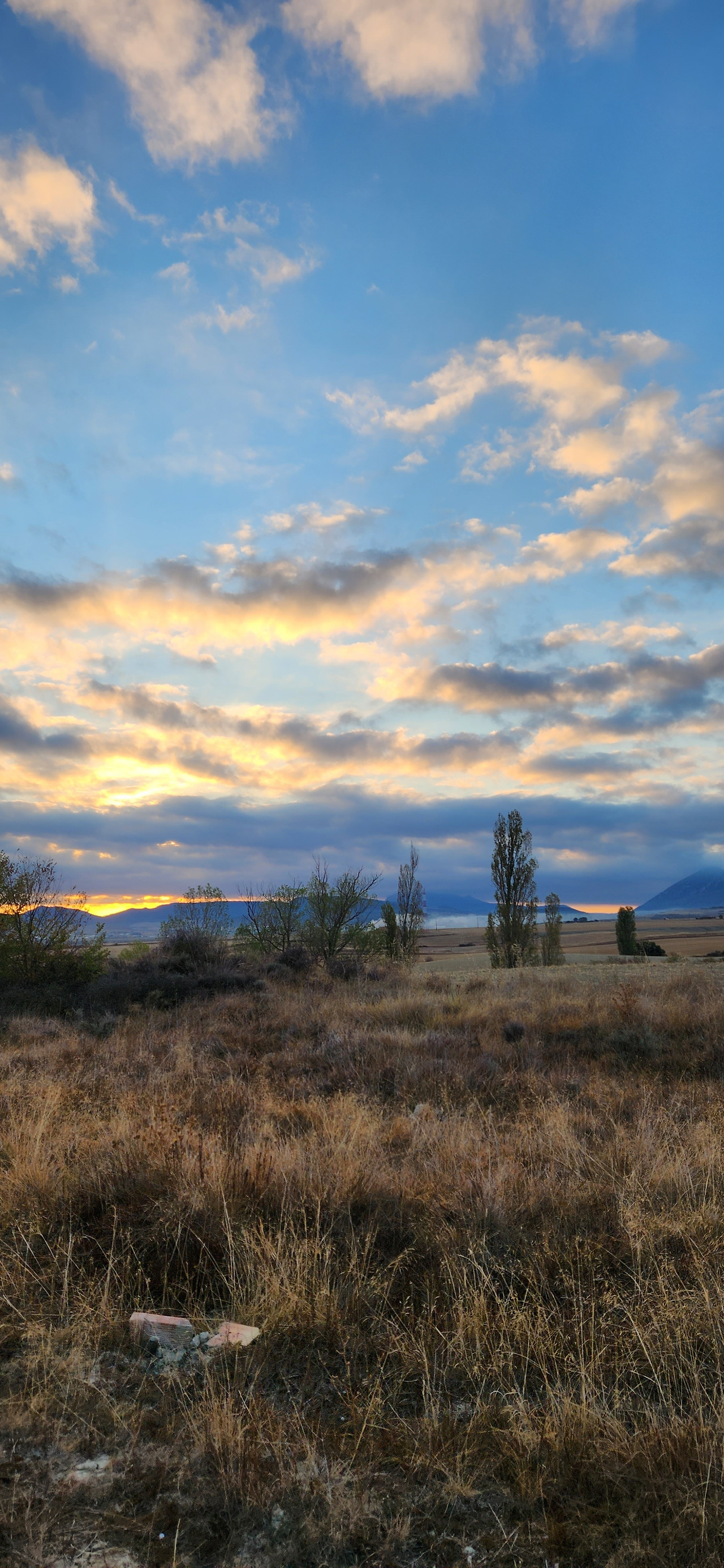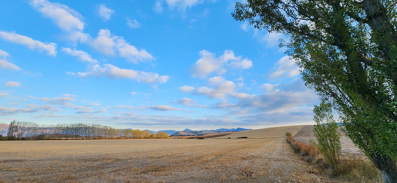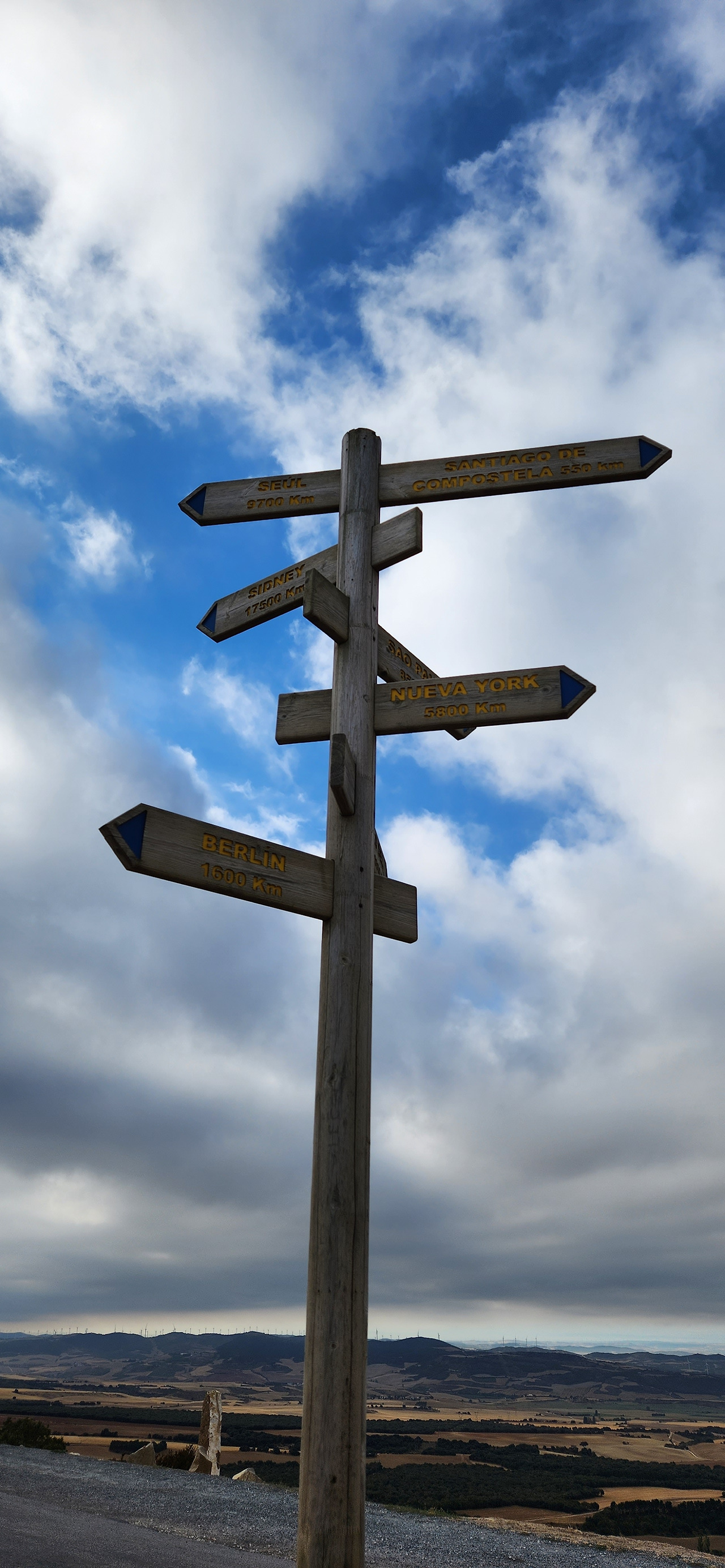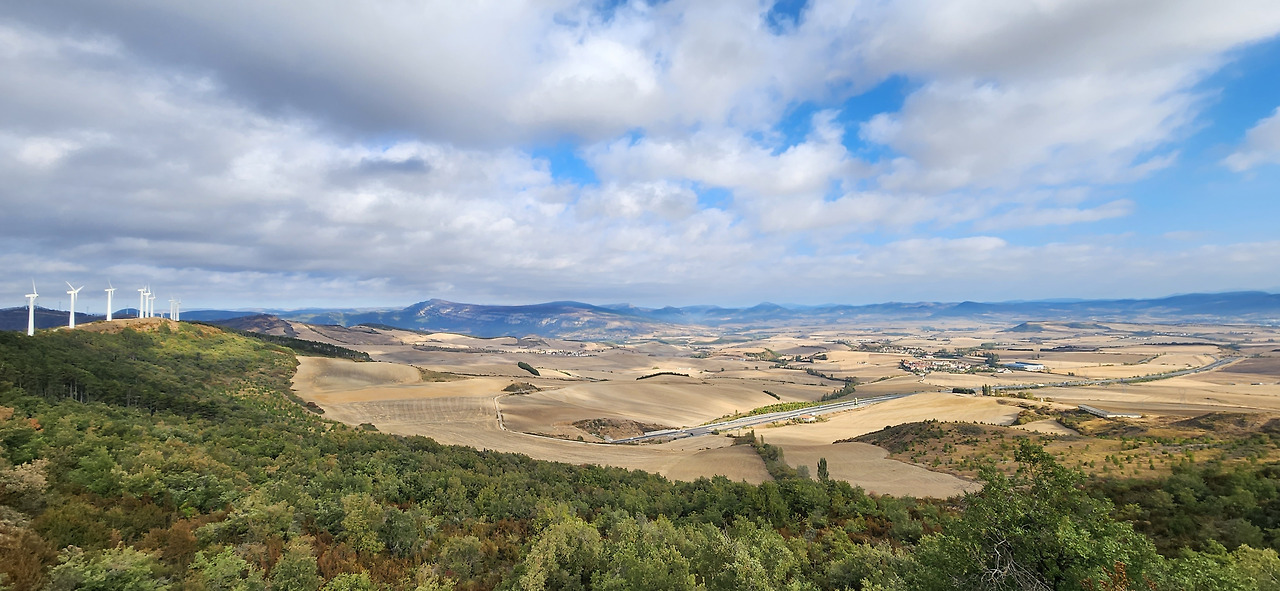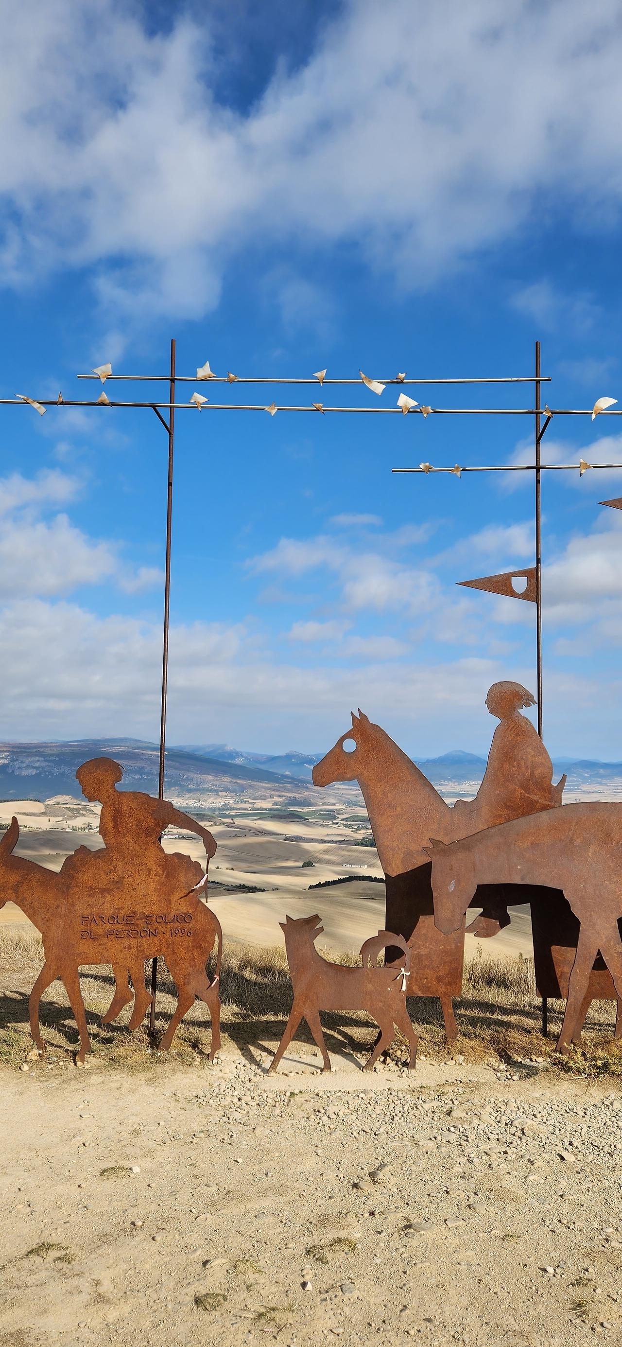 오늘의 여정은 푸엔테라레이나까지 약 24킬로의 길. 아마도 순례길에서 가장 유명한 장소일 용서의 언덕을 지나는 날이다. 도심을 빠져나오기까지 한시간여는 지루한 외곽의 길이지만, 이윽고 저 멀리 언덕이 보이면서 천천히 오르는 평원길이 시작되었다. 서울에서는 볼 수 없는 지평선과 수평선상의 아침햇살. 저 멀리 보이는 언덕의 지형을 상상할 수 있는 평원의 길이다. 아침의 청명한 날씨와 함께 동이 트면서 비현실적일듯 아름다운 풍경이 펼쳐졌다.