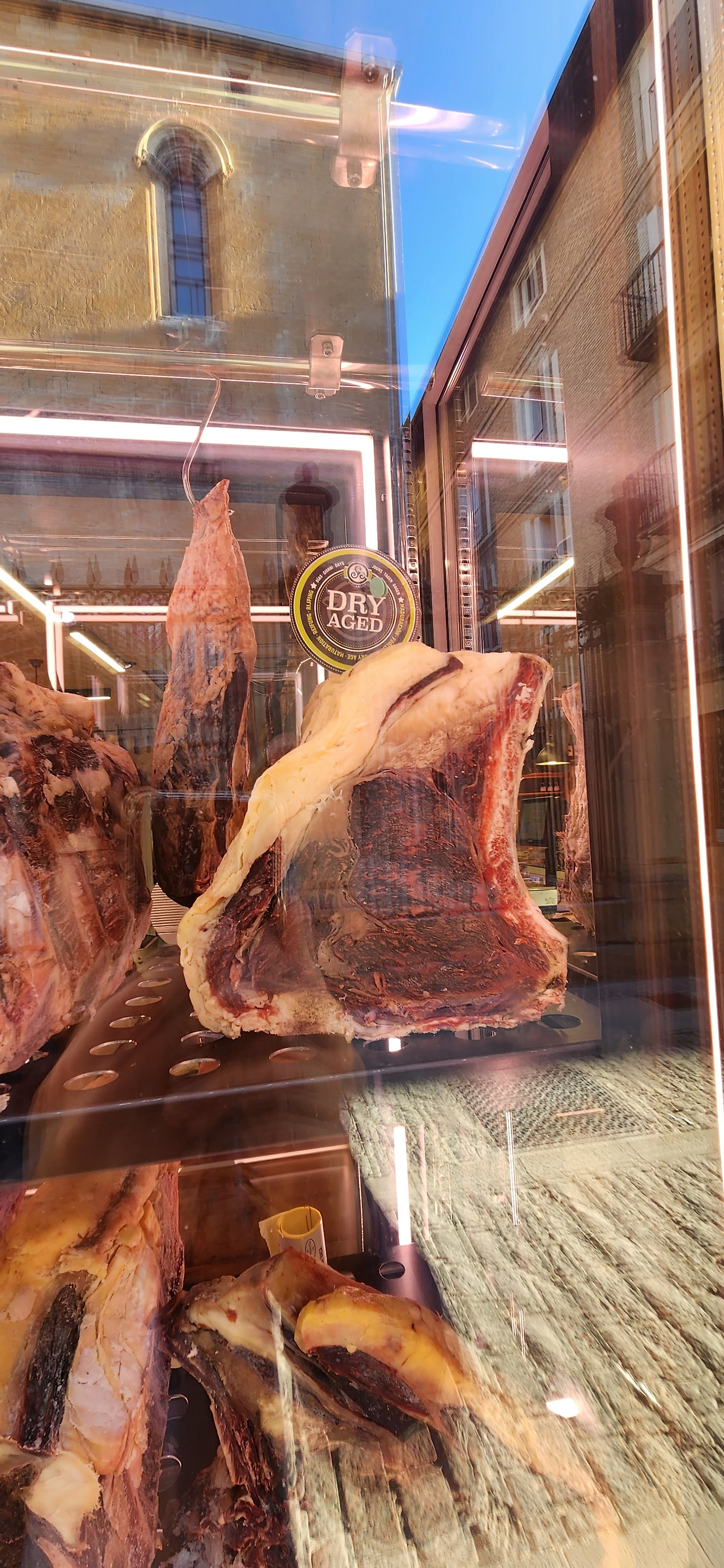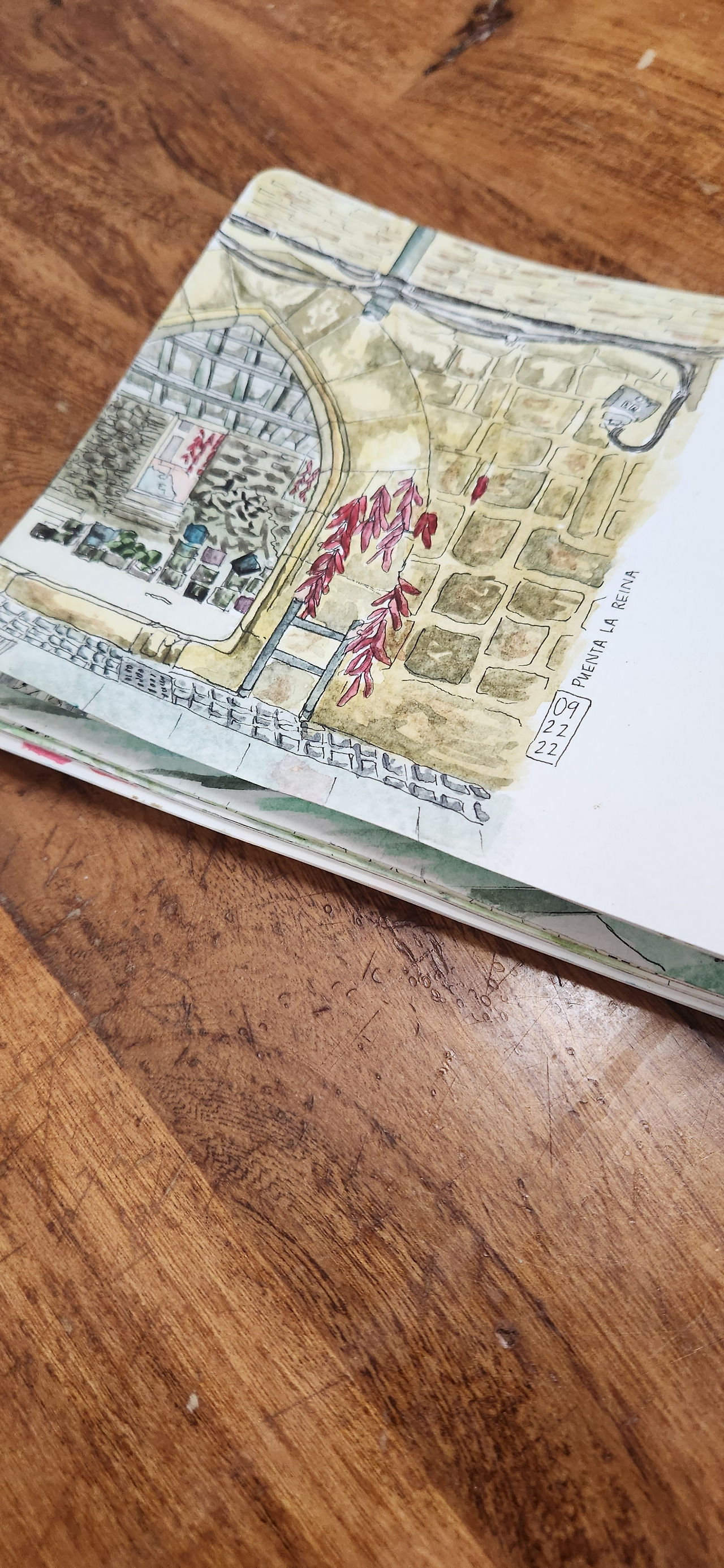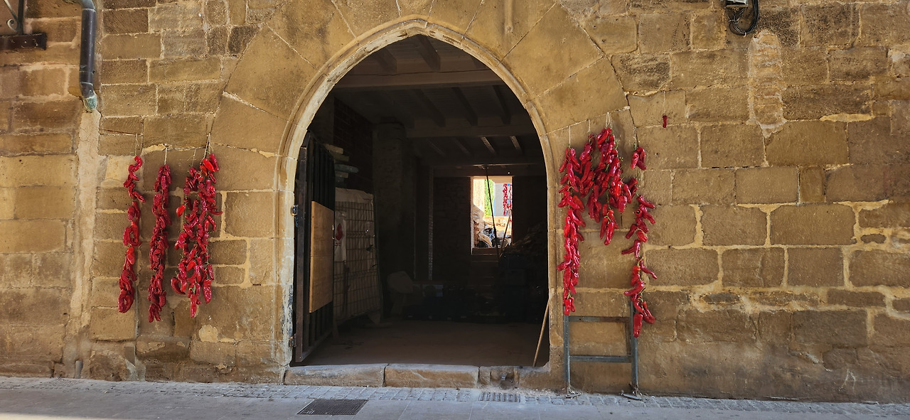 그는 도시마다 하나씩의 풍경을 노트에 남기고 있다고 했다. 다가가보니 오늘은 푸엔테라레이나 마을의 어느 골목 켠 고추 말리는 풍경을 그리고 있었다. 오... 멋진데. 도구도 예쁘고 그림도 빠르게 쓱쓱 잘 그린다. 카미노 길에서 근사한 루틴인 것 같다. 난 비록 도시마다 예술적인 활동을 할 자신은 없지만 하나씩 맛집을 찾는다든지 와인 한병을 마신다든지 하는 자신은 있는데. 그래 나도 질 수 없지 너는 그림을 그려라 나는 술을 마셔야겠다. 동네에서 인기가 많을 것 같은 정갈한 푸줏간 한켠에 주인장이 엄선한 것으로 추정되는 로컬 화이트와인이 보여 한병 샀다.