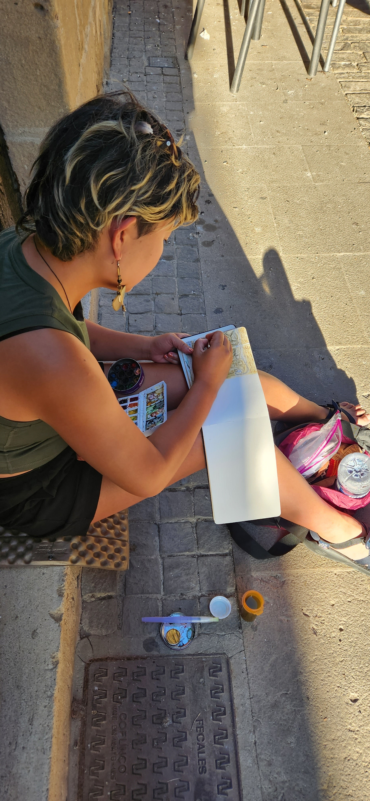 배부르게 밥먹고 나니 마음이 느긋하다. 설렁설렁 마을을 어슬렁거렸다. 마을은 긴 골목같은 구조로 되어있었고 한낮의 풍경은 참 한적했다. 그러다 어느 골목의 한켠에서 카밀라가 그림을 그리고 있는 것을 발견했다. 미국에서 온 카밀라는 론세스부터 길에서 종종 마주 친구인데 매우 잘 걸어서 아침 일찍 치고 나가 일찌감치 숙소에 도착해 있고는 하는 에이스 그룹 중 하나이다. 걷고, 자고, 먹고, 그리는 지금의 일상이 좋다고 한다.